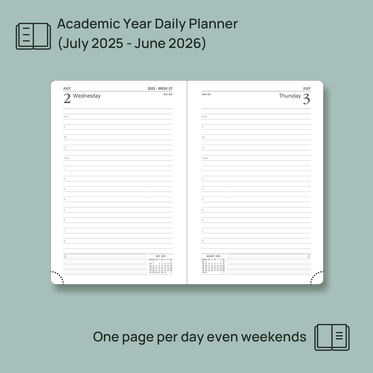 - ONE PAGE PER DAY, INCLUDING WEEKENDS - This daily planner (July 2025 – June 2026) offers 365 daily pages, each with ample space for hourly scheduling. It keeps your busy daily routines organized and manageable.