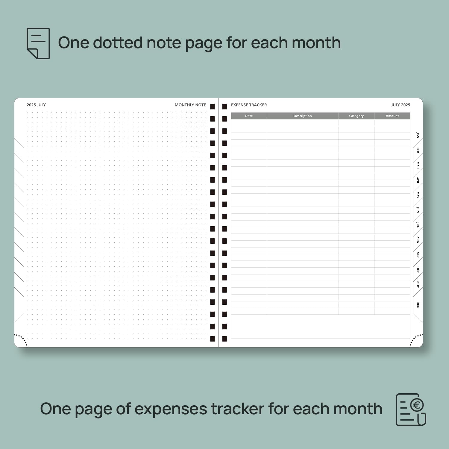 - EXTRA FUNCTION PAGES: This 2025 monthly planner also contains "2025-2026 Yearly Overview" Page + "2025-2026 Holiday & Calendar" Page + Monthly Expenses Page+ Contact & Password Pages + 7 Dotted Notes Pages for jotting down your ideas, thoughts or any other happy things in detail.