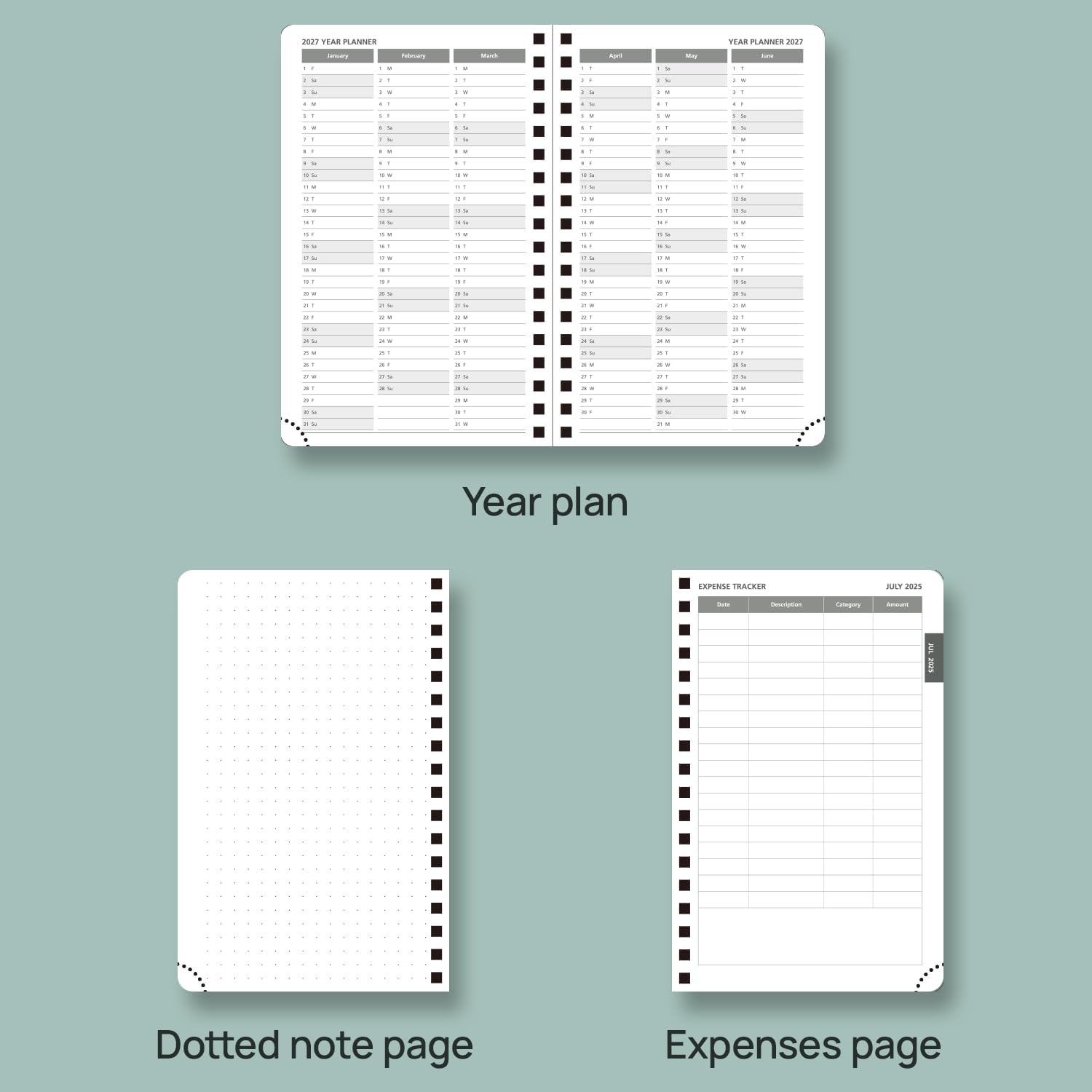 - EXTRA FUNCTION PAGES: This 2025 monthly planner also contains "2025-2026 Yearly Overview" Page + "2025-2026 Holiday & Calendar" Page + Monthly Expenses Page+ Contact & Password Pages + 7 Dotted Notes Pages for jotting down your ideas, thoughts or any other happy things in detail.