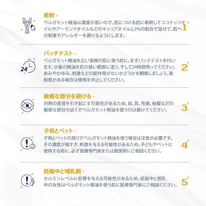 - [ 𝐏𝐫𝐞𝐜𝐚𝐮𝐭𝐢𝐨𝐧𝐬 ] - 𝐍𝐎𝐓 𝐄𝐃𝐈𝐁𝐋𝐄. Please understand the properties and efficacy of essential oils before use, follow the recommended dosage, 𝐌𝐔𝐒𝐓 𝐁𝐄 𝐃𝐈𝐋𝐔𝐓𝐄𝐃 before use on human body, avoid contact with sensitive areas, store in a cool, dry place. pregnant women, people with skin allergies should consult a professional before use. Discontinue use when there are signs of deterioration such as turbidity, odor, or increased sediment. Recommended to use up 𝐰𝐢𝐭𝐡𝐢𝐧 𝟔 𝐦𝐨𝐧𝐭𝐡𝐬 after opening