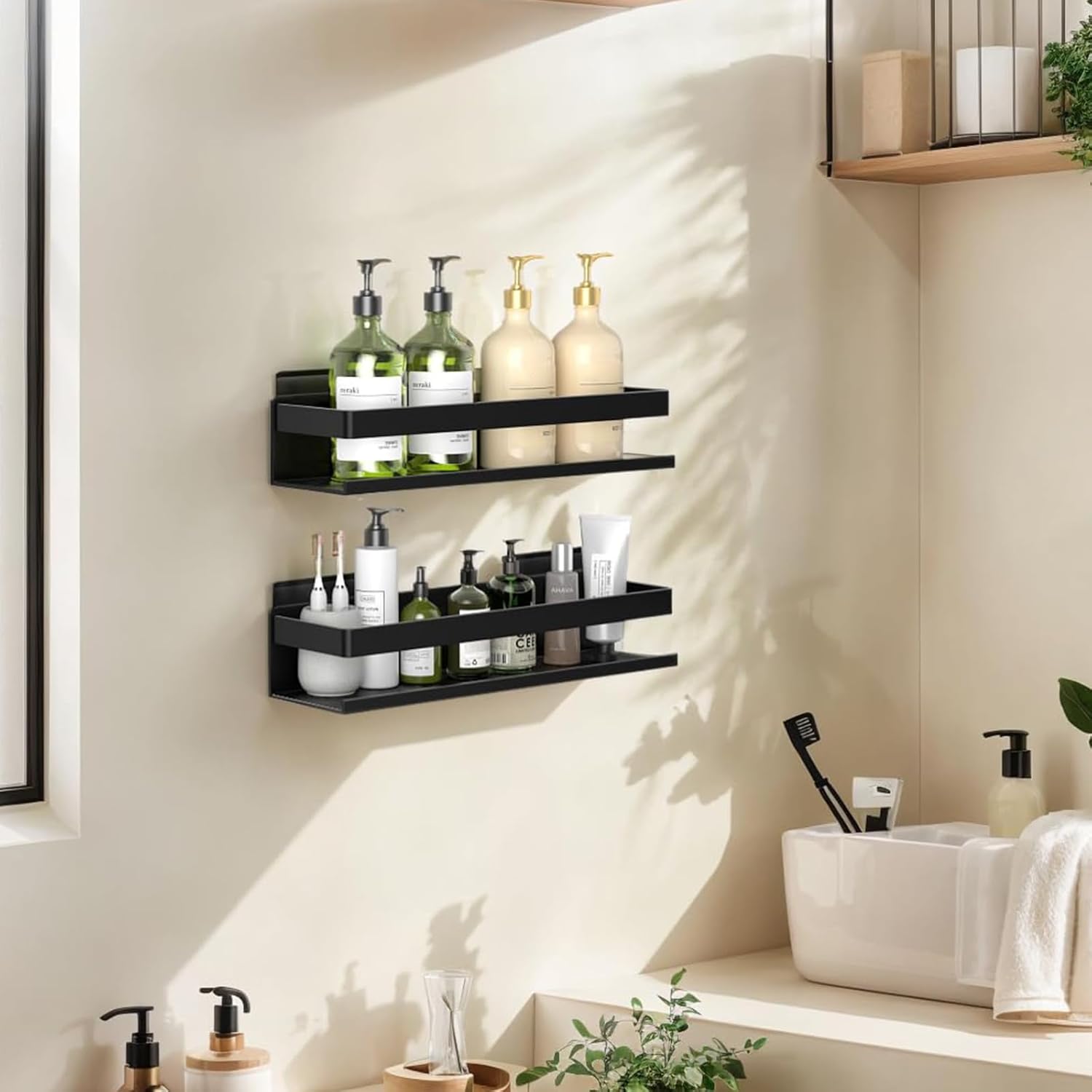 - (Use scenario) - These racks are suitable for bathrooms, kitchens and warehouses. Perfect for storing and organizing shampoo, conditioner, toothbrush cups, cosmetics, cleaning supplies, condiments,