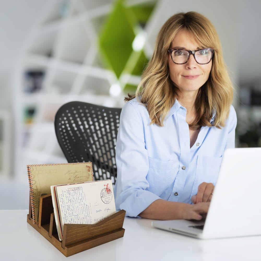 Picowe Desk Mail Organizer Wooden Mail Holder, 3 Slots Letter Holder Organizer Envelope Organizer for Home Office