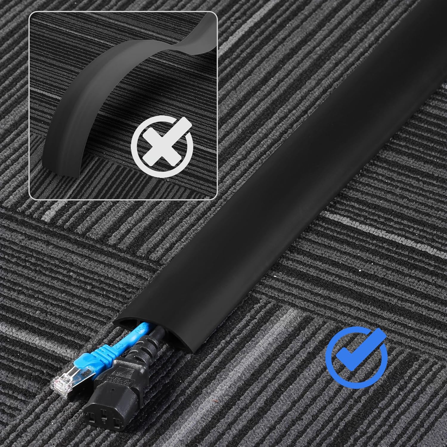 - Quality Floor Cable Concealer: Made of soft PVC material, comfortable to step on barefoot. Coiled packing - but very easy to flatten, uncoils to lay flat (NO need to reroll or add to boiling water to uncoil). The half-sealed design on the back of the floor cord cover can prevent deformation, and can be easily opened with a utility knife