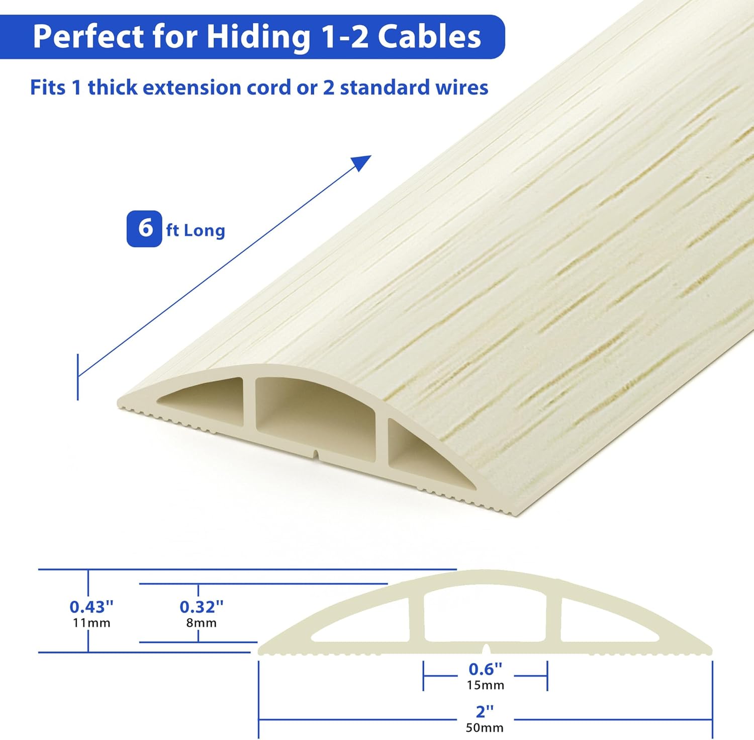 Floor Cord Cover 6ft, White Oak Wood Wire Hider Hide Extension Cords, Floor Cable Management Cover, PVC Cable Protector Cord Cavity W0.6in x H0.32in