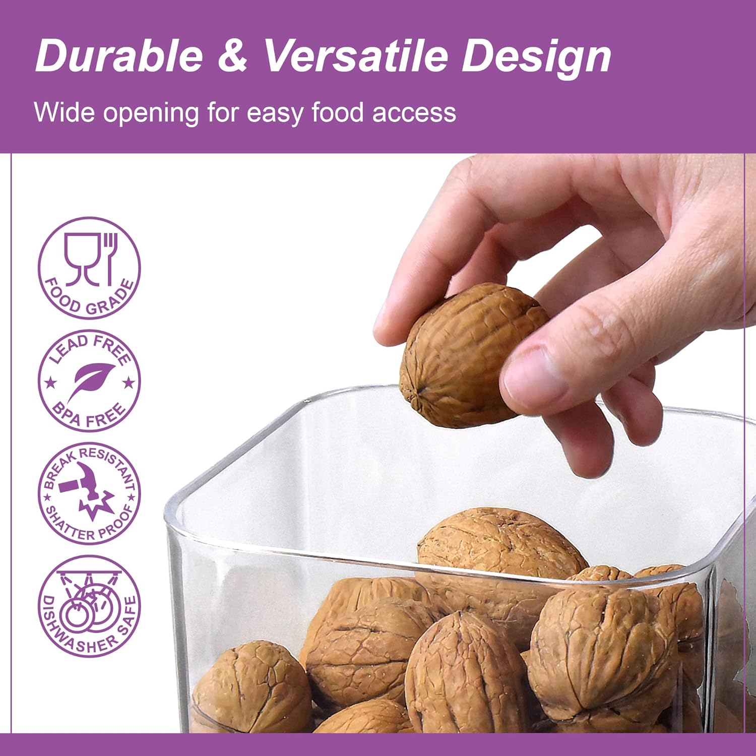 - [WORRIES OUT] Made of food-grade high-quality acrylic plastic. BPA-free and lead-free. Shatter-proof and break-resistant. With its premium material and sturdy construction, the canister is safe and durable for your everyday use.