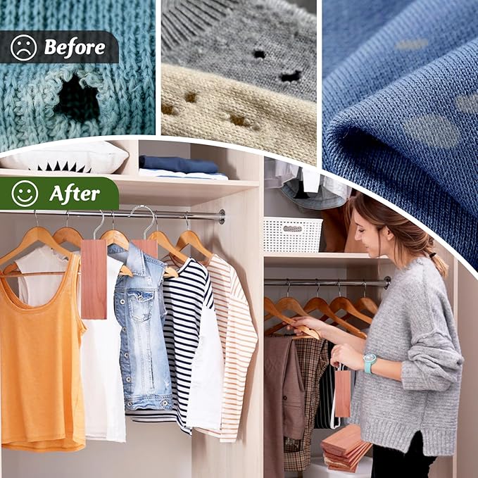 - 【Safe for Kids and Pets】:Cedar blocks for clothes storage are made of 100% natural cedar wood and can be in direct contact with any fabric without staining clothes.The polished surface is smooth and free of any additives, making cedar closet safe for both children and pets.