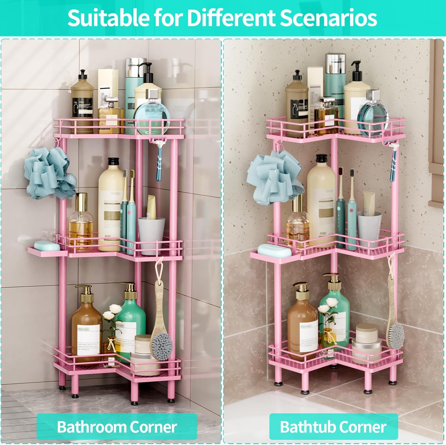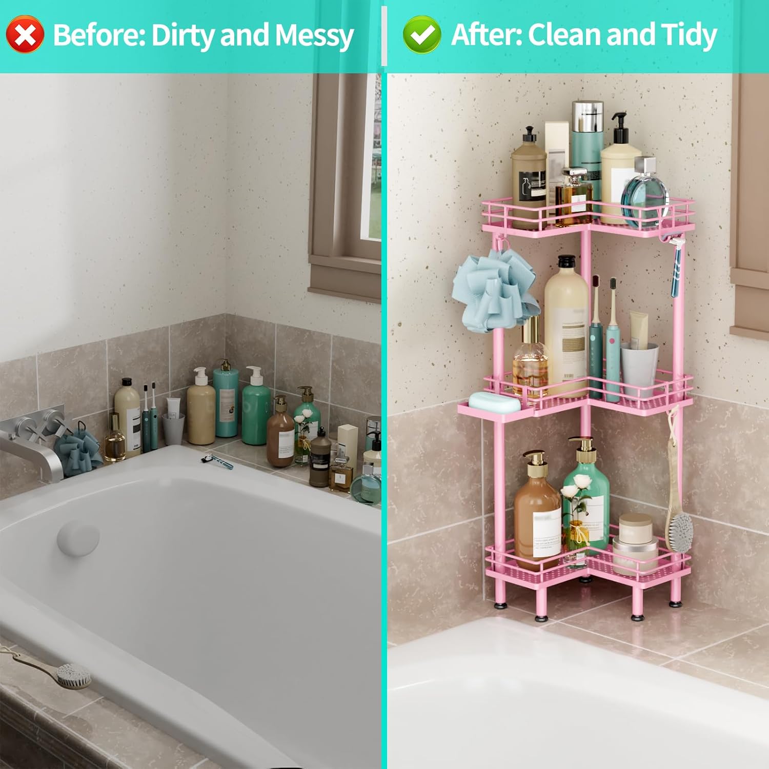 - [Easy Installation & Professional Service]: Our shower corner shelf is easy to install with complete accessories, and it can be done quickly in a few minutes. If you have any dissatisfaction with the shower tower caddy corner, please reach out to us
