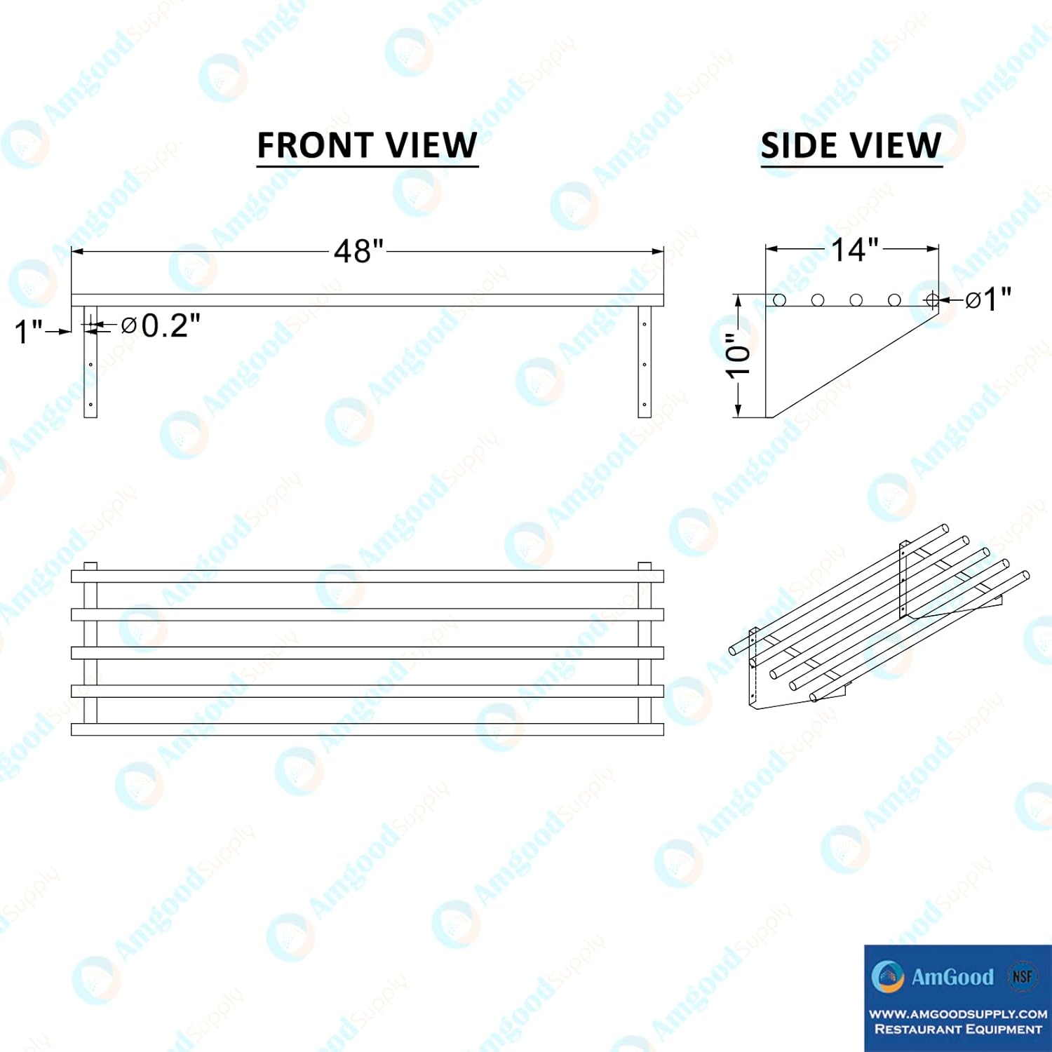 AmGood 14 in. x 48 in. NSF Stainless Steel Tubular Wall Shelf | Heavy-Duty Metal Shelving for Appliances & Equipment | Ideal for Kitchen, Restaurant, Garage, Laundry, Utility Room
