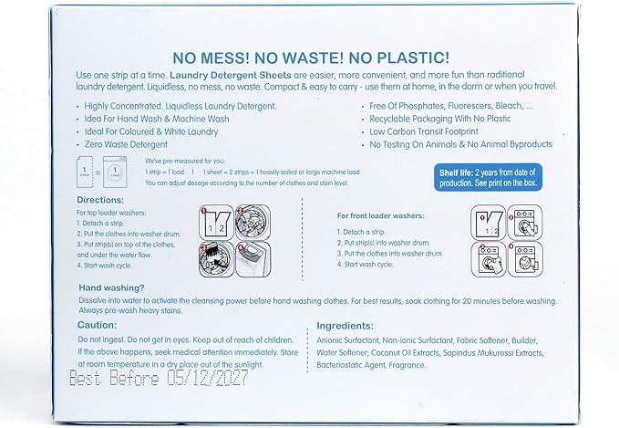 - COMPACT AND CONVENIENT: This box contains 60 pre-measured laundry detergent sheets for easy packing and washing on-the-go. Take these sheets with you wherever you go! Skip the mess and bulk of liquid detergent bottles, just toss a sheet in with your load. Suds Life Detergent sheets handles up to 120 loads.