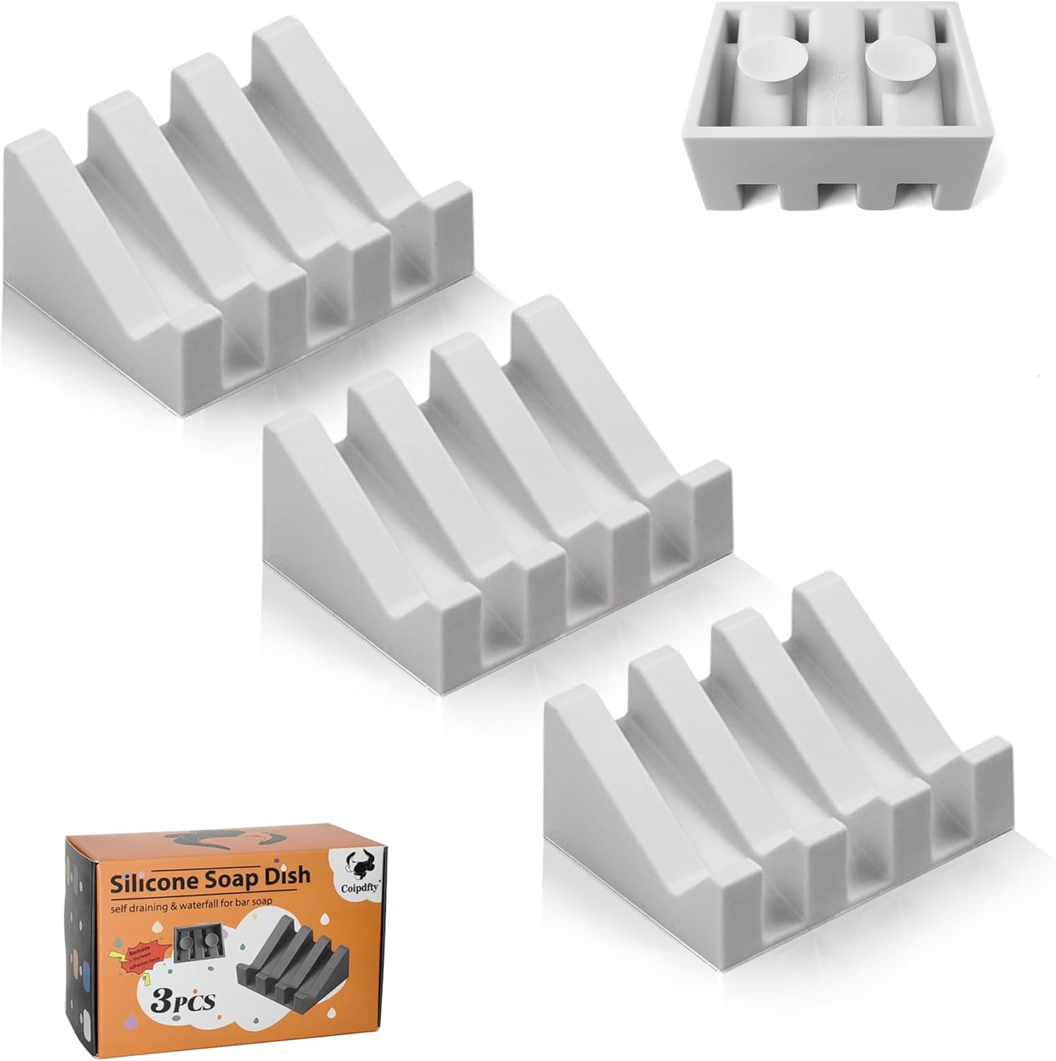 Self Draining Soap Dish,Silicone Suction Cup Soap Holder, Bathroom Soap Dish for Bar Soap,Can Extend Soap Life,Bathroom, Bath Tub, Kitchen Sink(3, Light Grey)