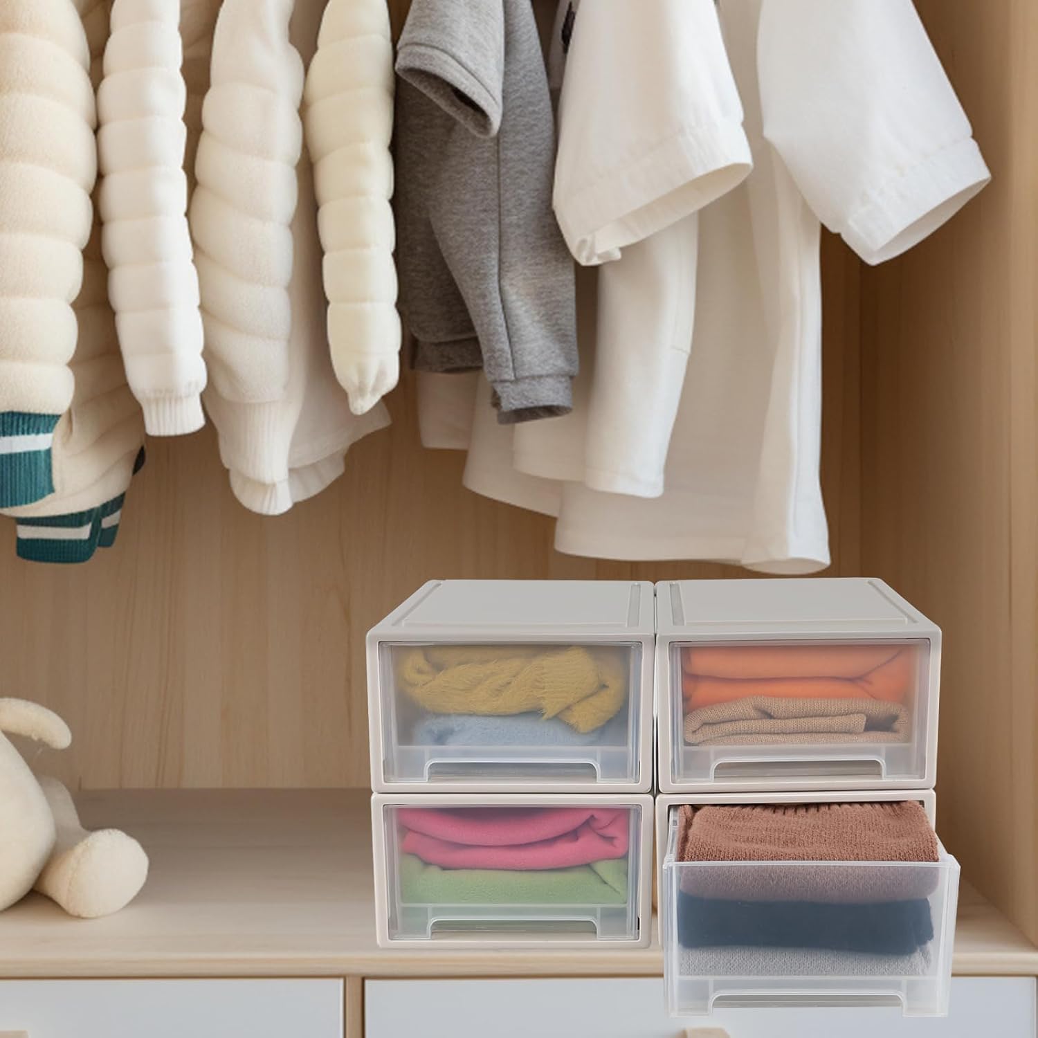 12 Quart Stacking Desktop Drawer Boxes, Plastic Storage Drawer Unit, 4 Pack