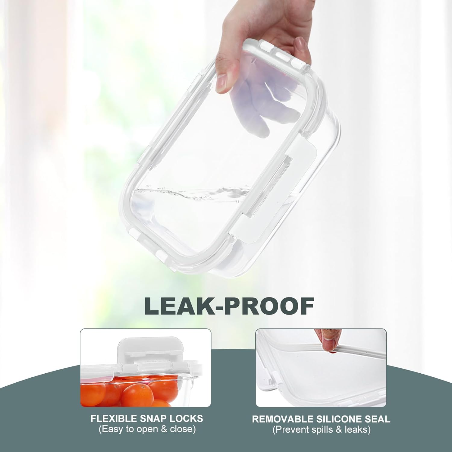 KOMUEE 10 Pack Glass Food Storage Containers, Meal Prep Containers with Lids, Airtight Glass Lunch Boxes, Freezer, Oven, and Microwave Safe, White