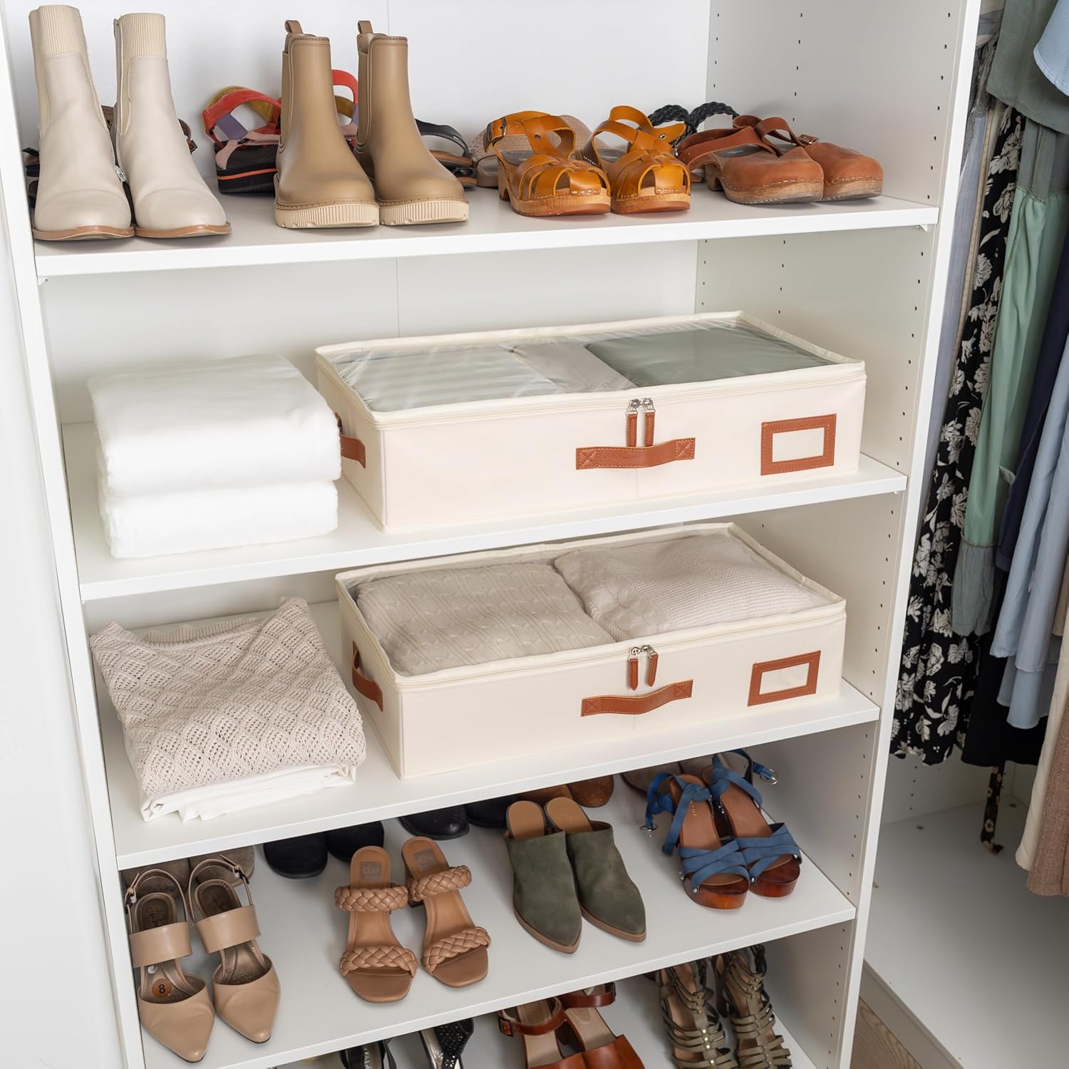 OrganiHaus Under Bed Storage Containers, Bedroom Storage and Organization Bins, Clothes Organizer for Closet with Clear Cover and Reinforced Handles - Set of 2 23.5x12.5x5 inches Off-White