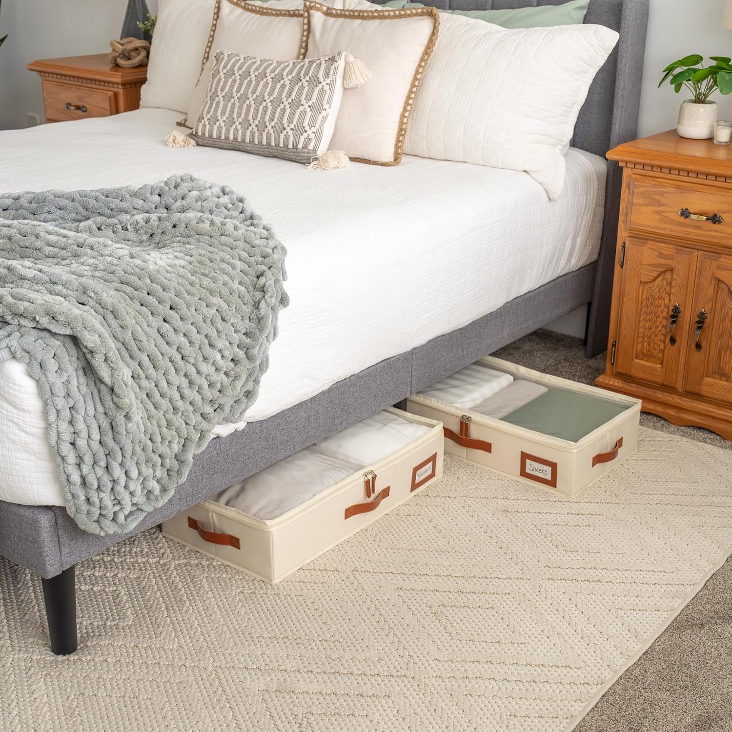 - Reinforced Thick Cardboard for Stability: Unlike flimsy alternatives, our under the bed storage bins feature extra-thick cardboard on all sides and the bottom, helping them maintain shape even under heavy loads. These under bed organizers provide a reliable and sturdy solution for long-term use and heavy-duty storage needs.