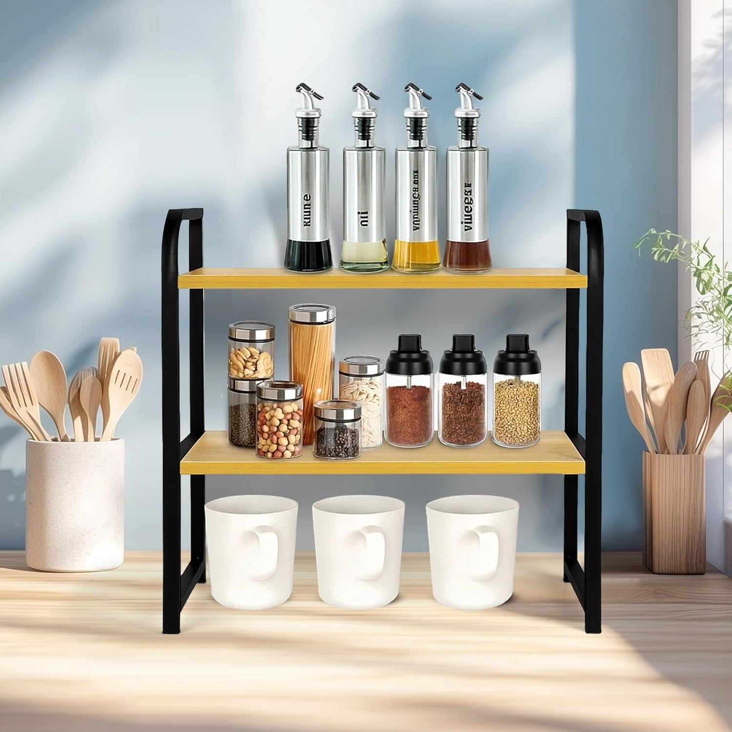 - 【Easy Assembly】 Our desktop shelf consists of two wooden boards and metal frame, and all necessary accessories. With two assembly options and adjustable shelf heights, you can customize your desk organizer shelf in minutes for a clutter-free workspace