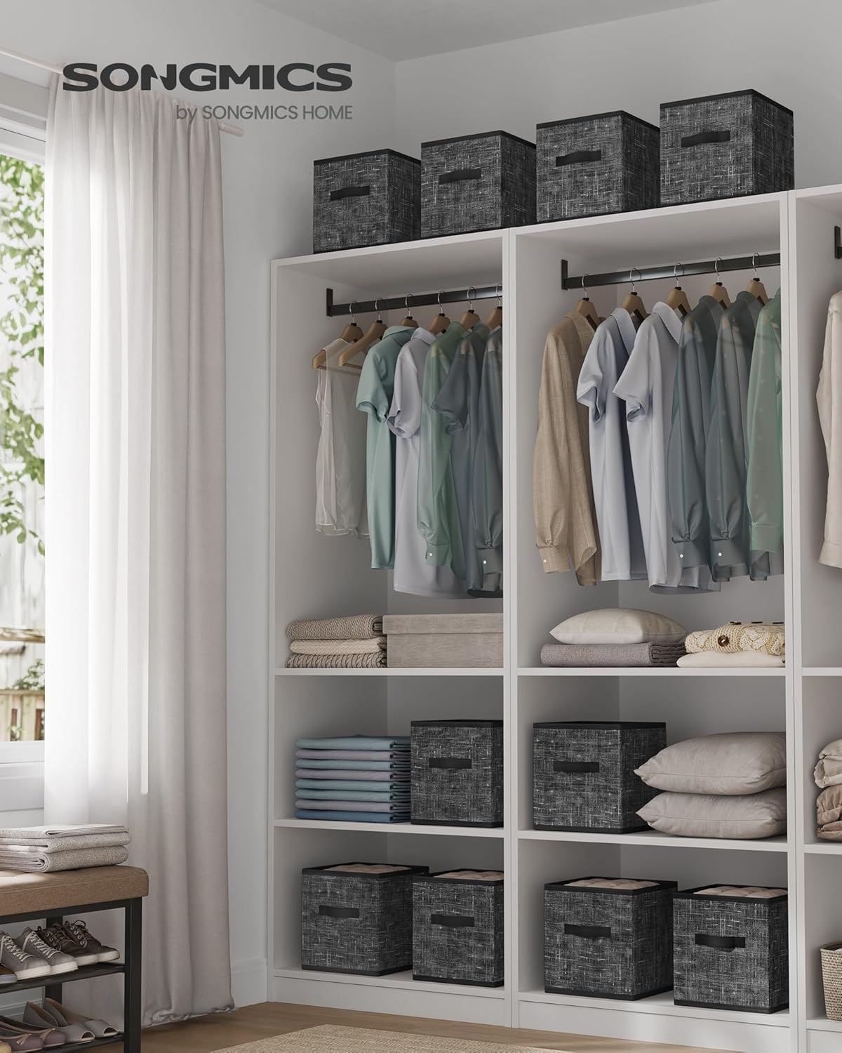 SONGMICS Storage Cubes, 10.2 x 10.2 x 11 Inches Non-Woven Fabric Bins with Double Handles, Set of 10, Closet Organizers for Shelves, Foldable, for Clothes, Ink Black UROB126B01