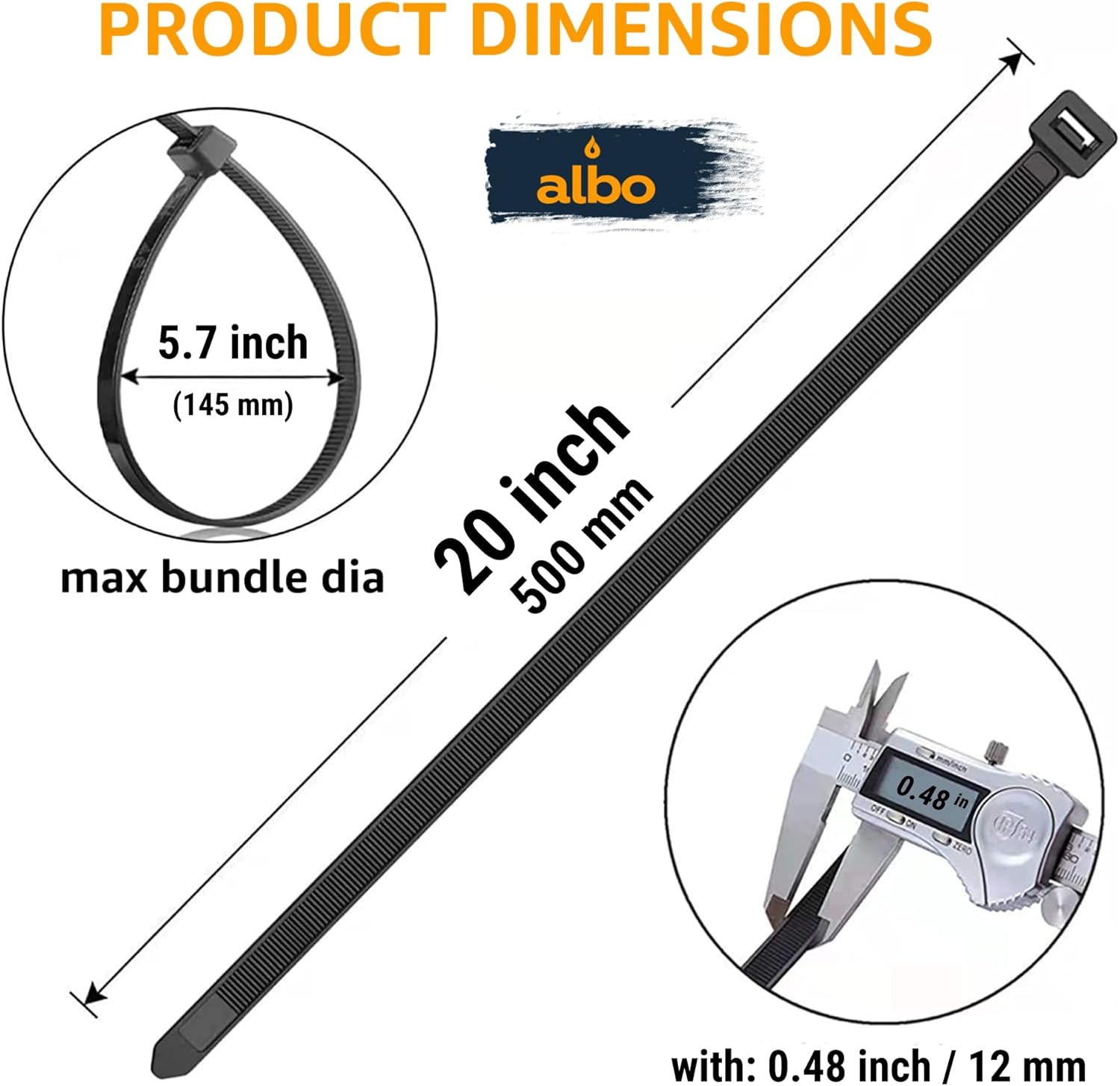 ALBO Black Zip Ties 20 Inch Plastic Cable Ties 100 Pack Tie Wraps Heavy Duty 200lb UV Resistant Nylon Wire Ties