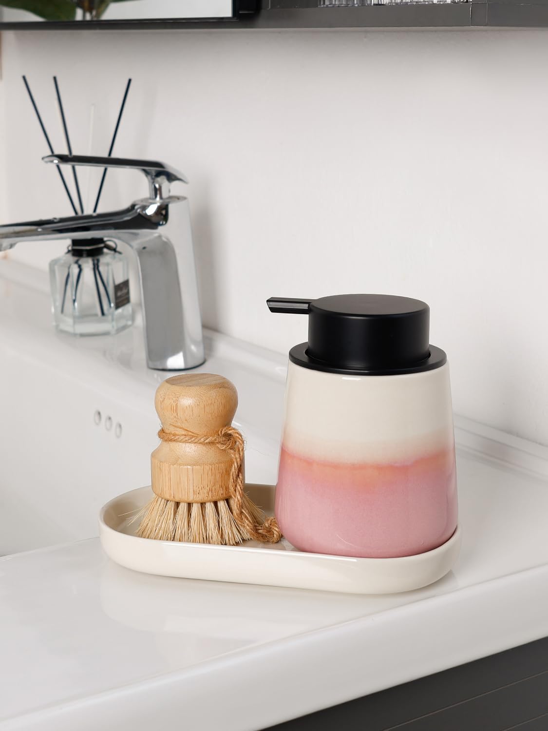 - Elegant Ceramic Design: Crafted with ceramic and a transparent glaze finish, this decorative tray features a minimalist design. For use as bathroom tray countertop, vanity organizer countertop,kitchen soap tray for counter or decorative tray for coffee table
