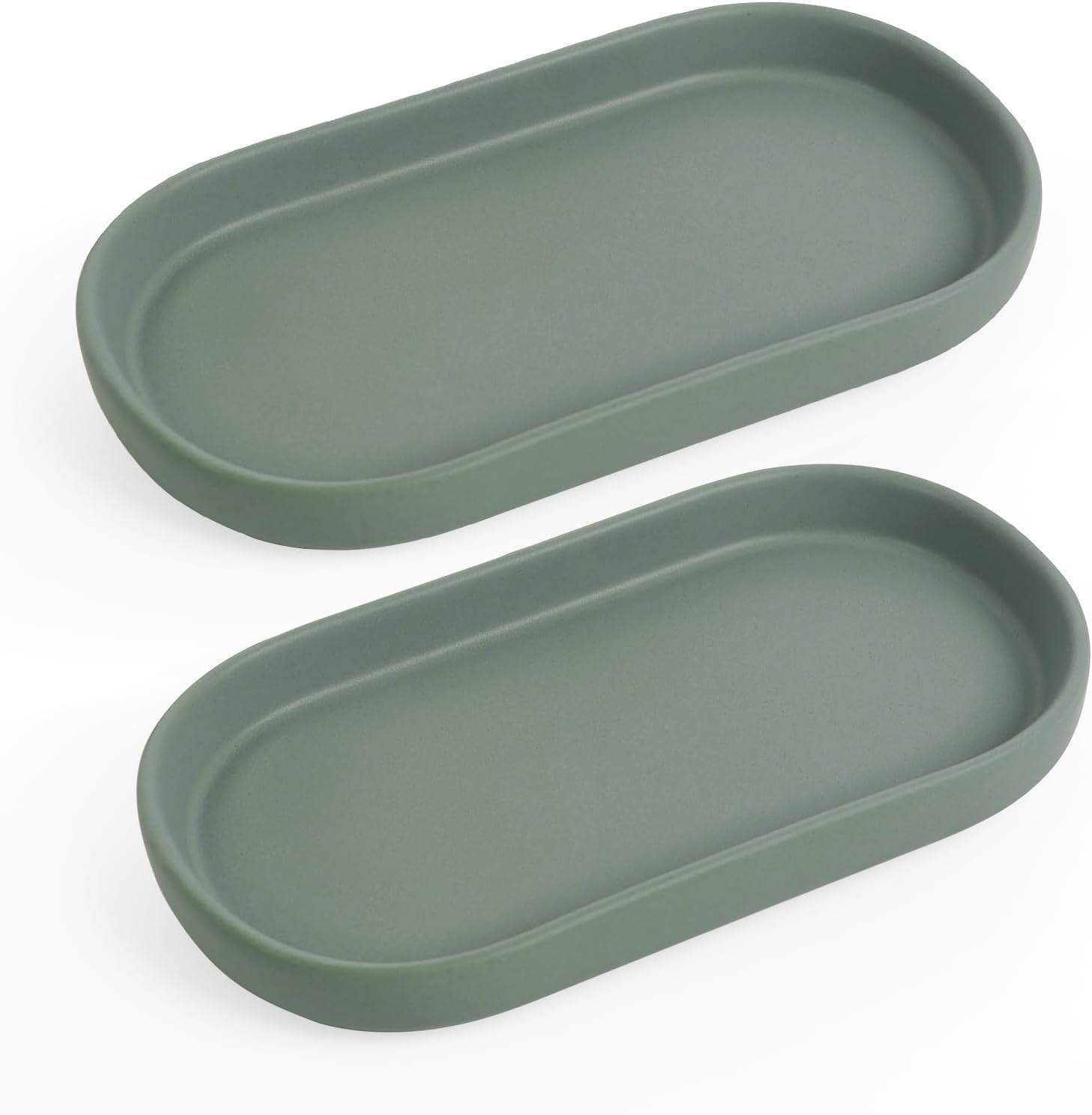 - Ceramic Design: Set of 2 decorative trays, crafted with ceramic and a a unglaze finish, features minimalist design. As small bathroom tray countertop, vanity organizer countertop, kitchen soap tray for counter, or decorative trays for coffee table