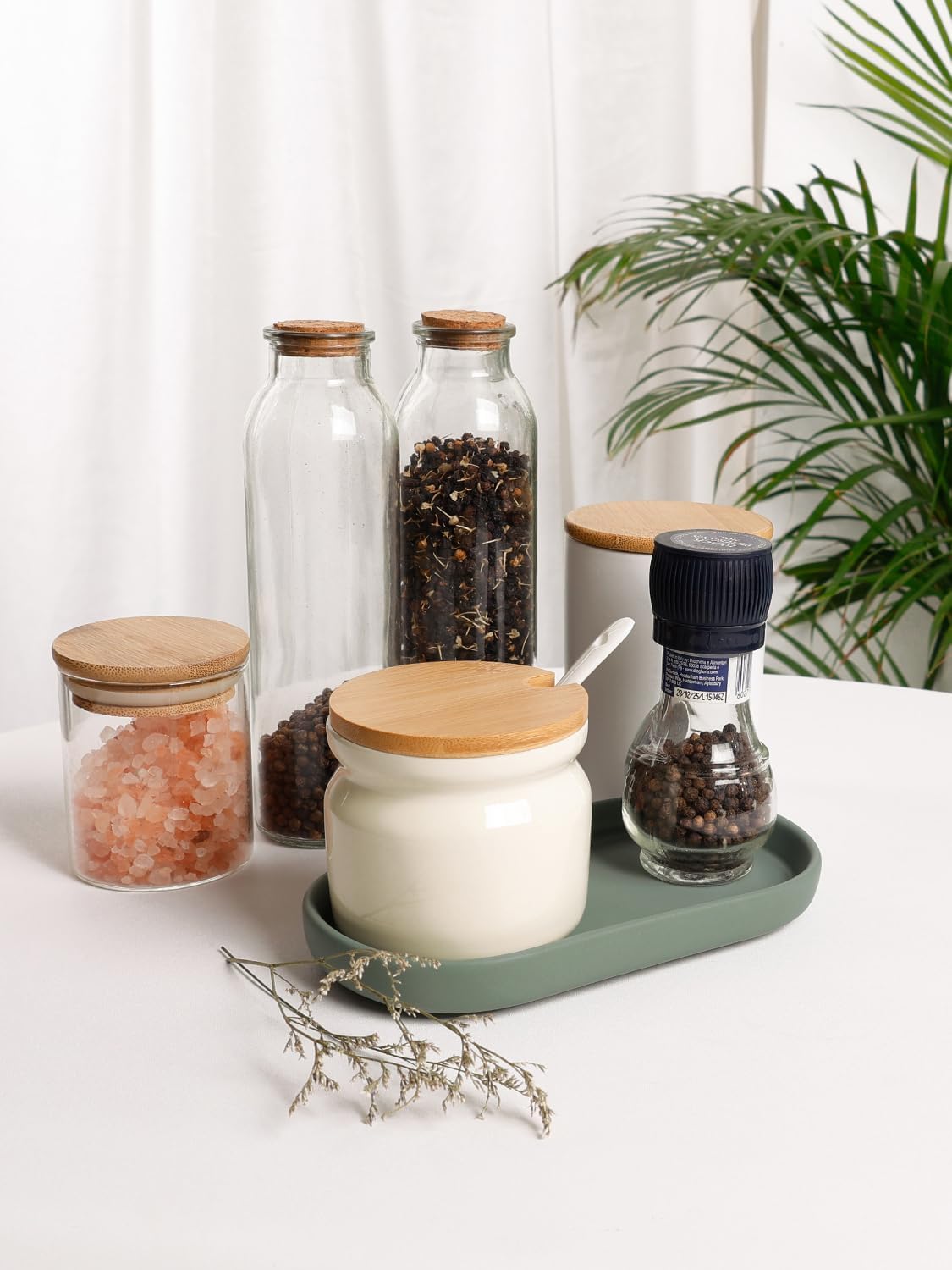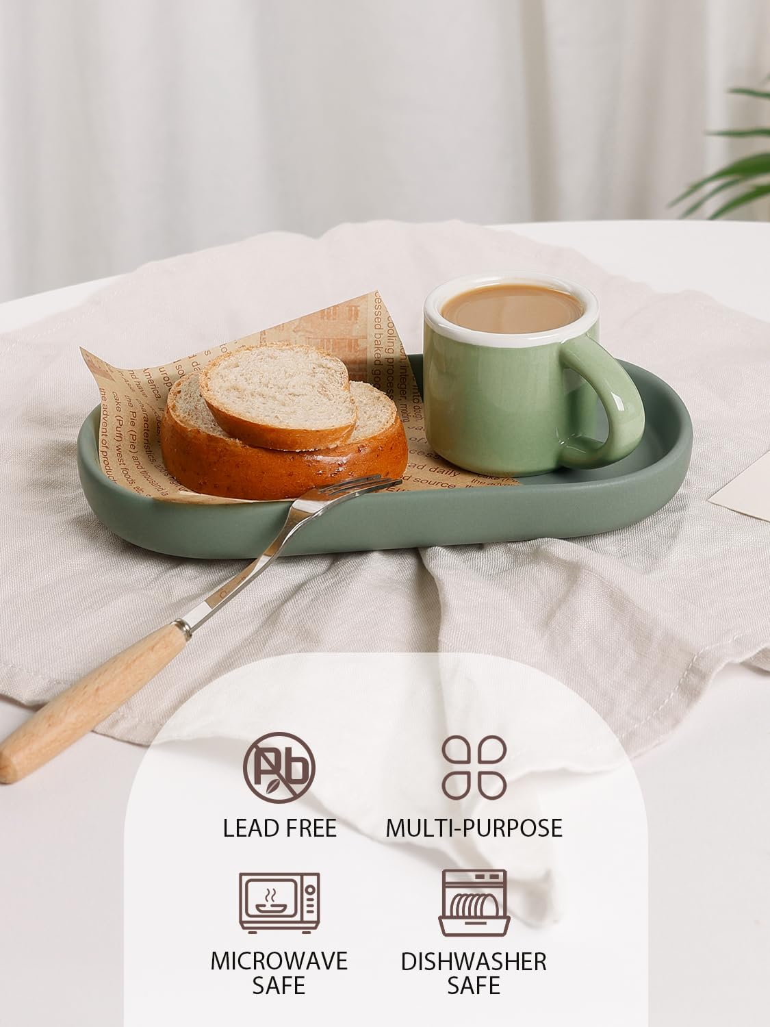 INGOFIN 7" Ceramic Bathroom Vanity Tray Set- 2 Pcs Bathroom Organizer Countertop Tray for Perfume, Jewelry, Small Kitchen Counter Soap Tray, Decorative for Bathroom Vanity and Toilet Tank, Green