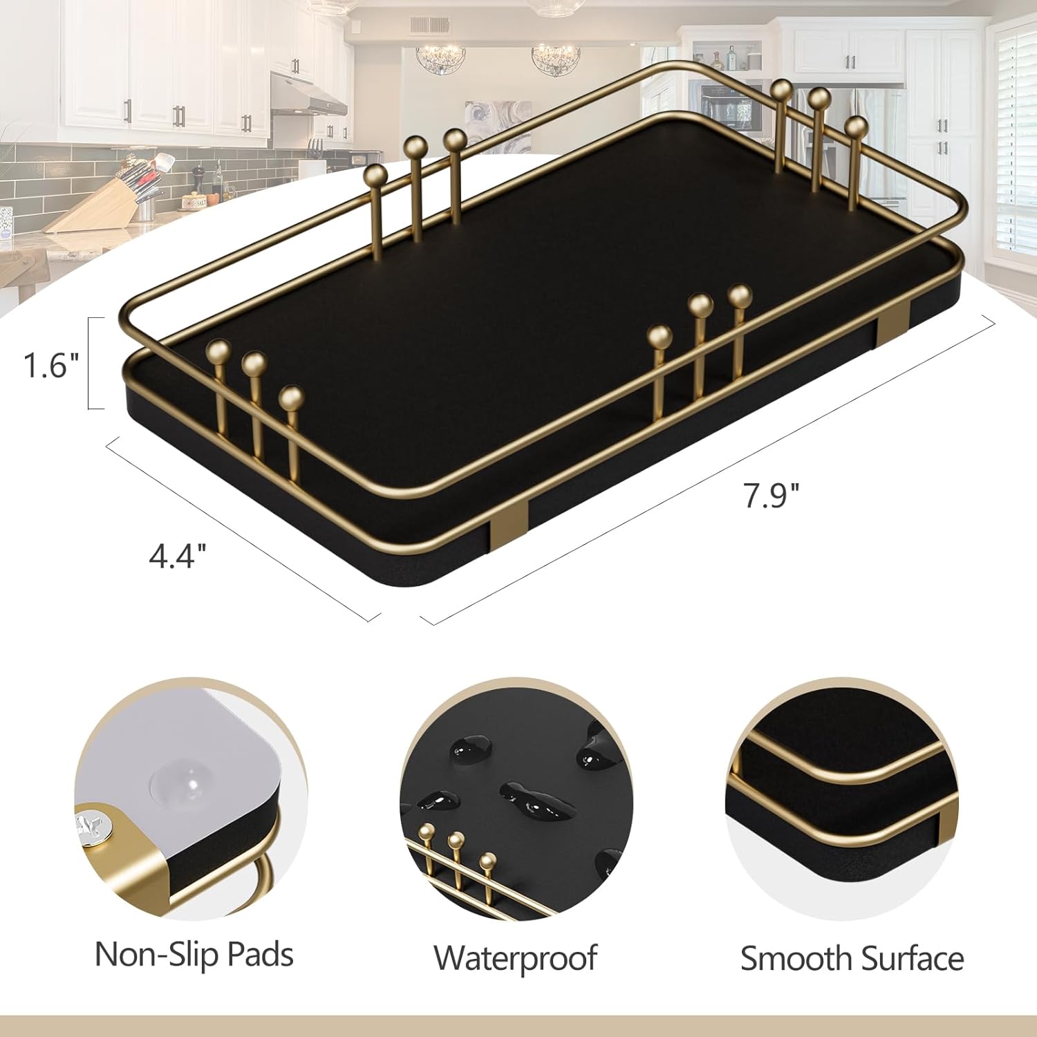 Bathroom Vanity Tray for Toiletries Makeup Perfume Candle Toilet Tank, Kitchen Tray for Soap Dispenser Spice Salt, Small Tray for Countertop Decor Coffee Nightstand 7.9”x4.4” Black-Gold