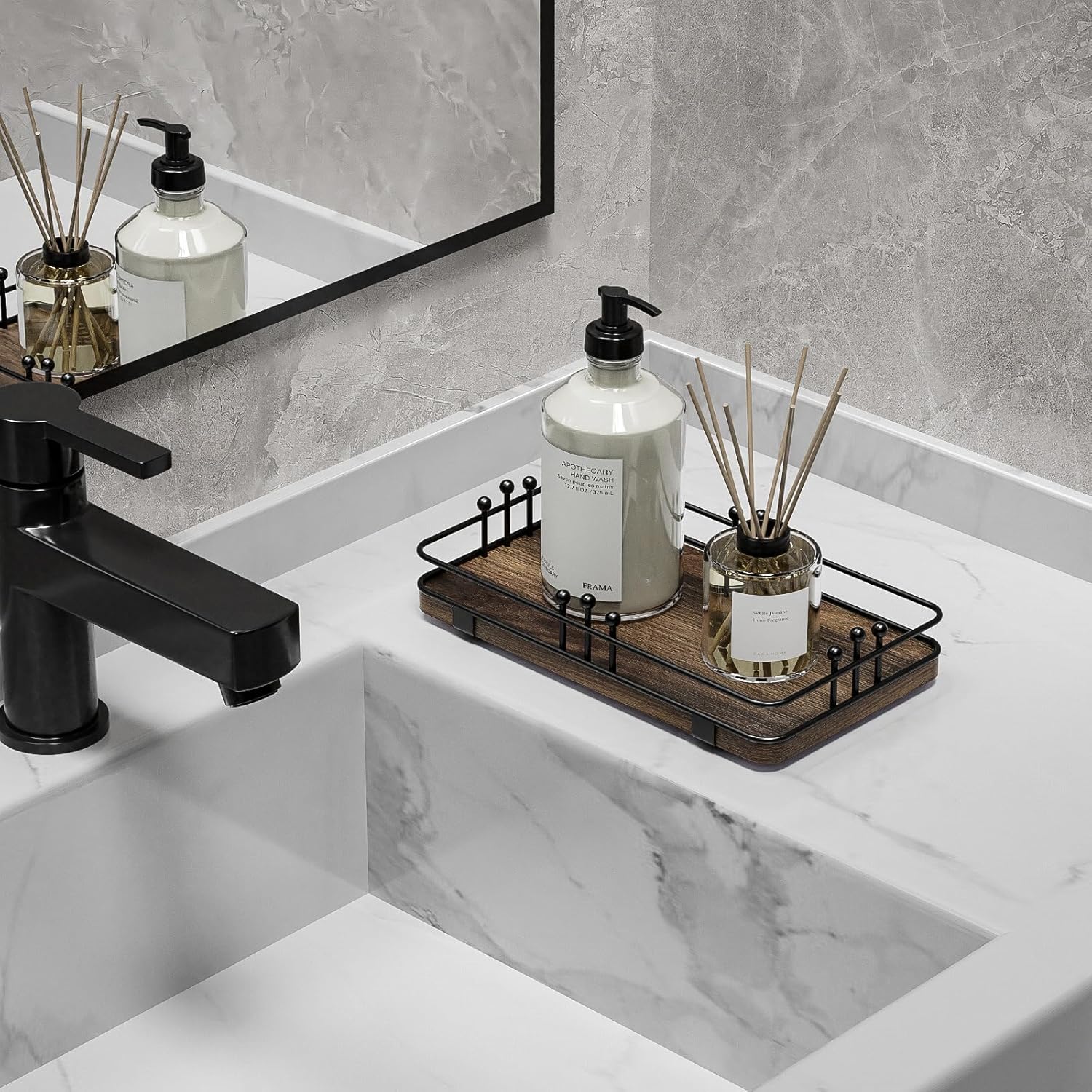 - Versatile & Functional: Our bathroom vanity tray enhances any space with its stylish design while serving multiple purposes throughout your home; Whether you use it as a bathroom tray, vanity tray, kitchen tray, decorative tray, perfume tray, jewelry tray, serving tray, catch-all tray, key tray, or toilet tank tray, it will keep your countertops tidy while adding a unique and stylish touch to any room