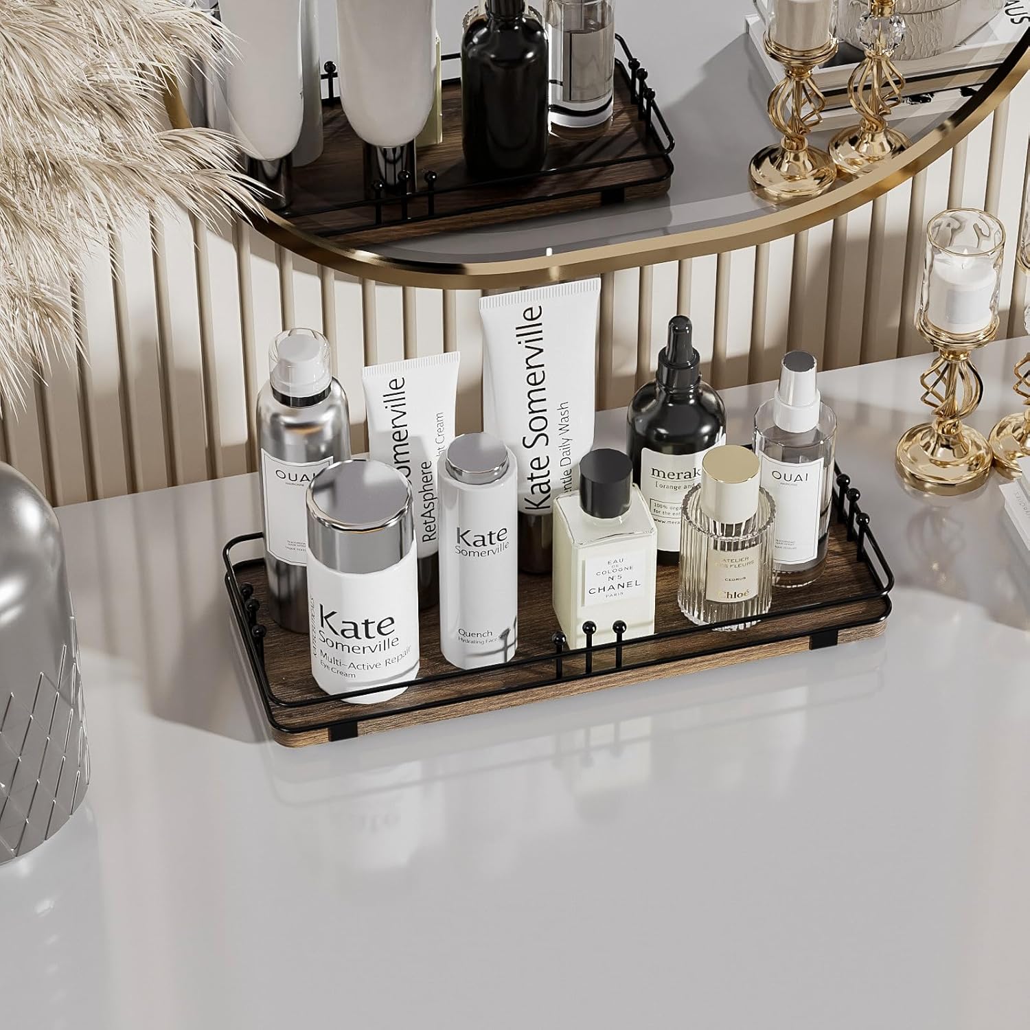 - Versatile & Functional: Our bathroom vanity tray enhances any space with its stylish design while serving multiple purposes throughout your home; Whether you use it as a bathroom tray, vanity tray, kitchen tray, decorative tray, perfume tray, jewelry tray, serving tray, catch-all tray, key tray, or toilet tank tray, it will keep your countertops tidy while adding a unique and stylish touch to any room