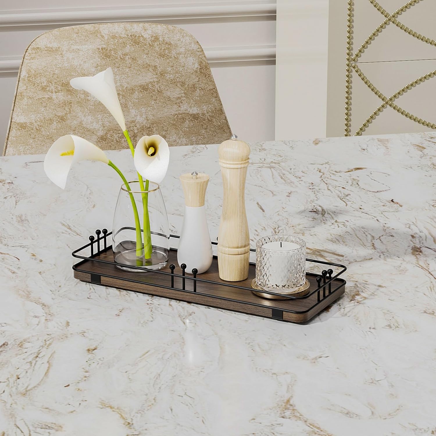 Bathroom Vanity Tray for Countertop Toiletries Perfume Makeup Soap Dispenser Toilet Tank, Kitchen Tray for Salt Spice, Decor Tray for Candle Nightstand Coffee 11.3”x 4.4” Brown-Black