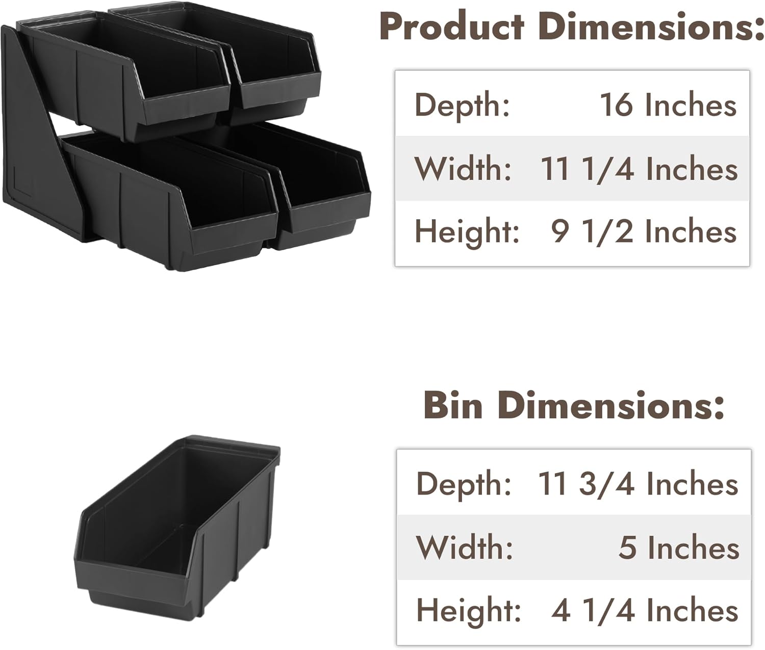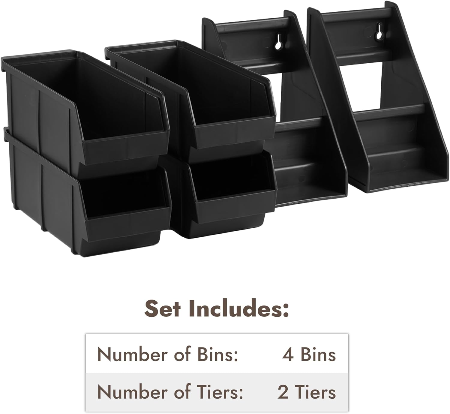 - ✅This set includes (4) organizer bins, (2) two-tier stands.