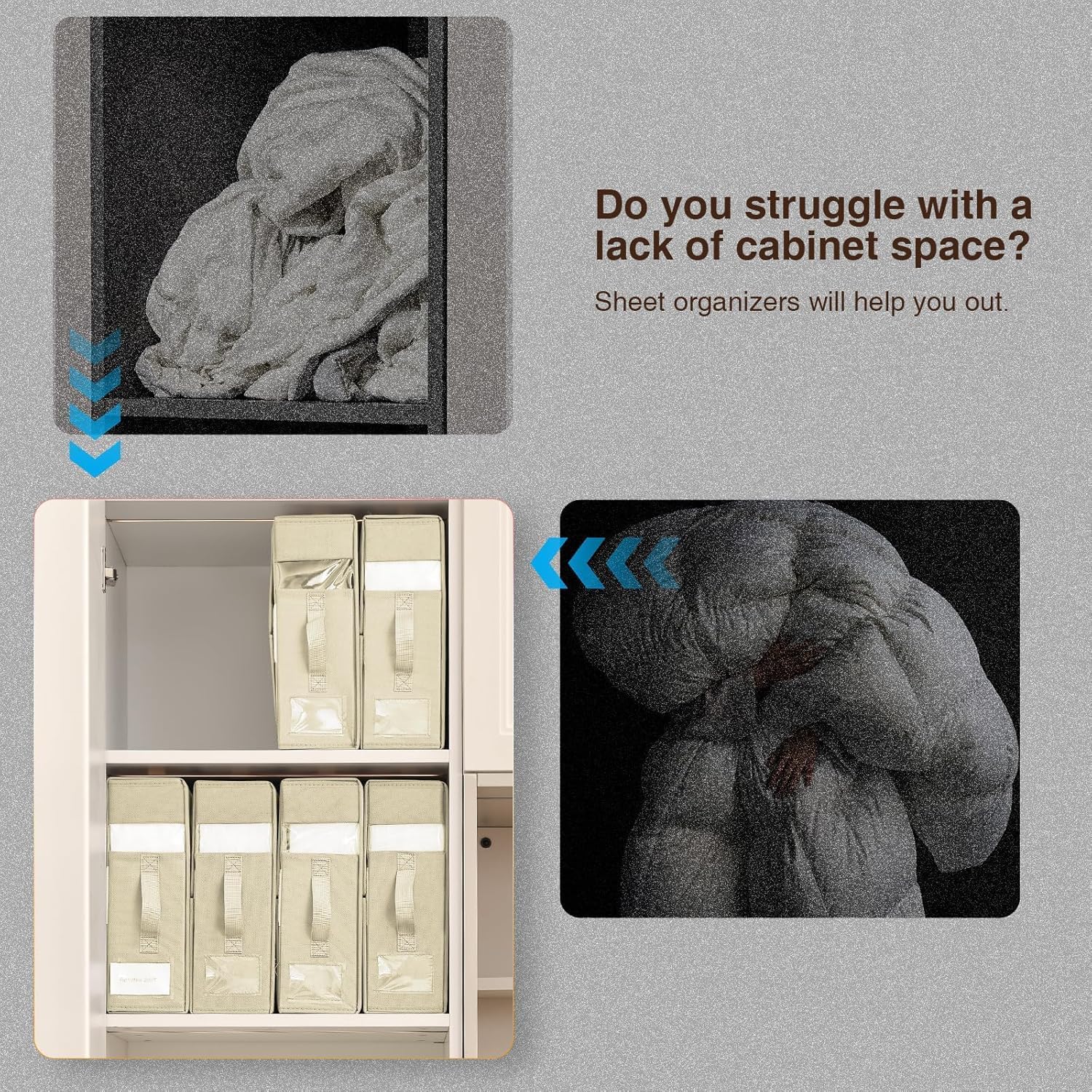 - 【STURDY & RESILIENT】Our bed sheet organizer closet organizer is crafted from resilient fabric and features a high-quality metal zipper. The inner panel maintains its shape well, and the zipper operates with strength and a smooth glide. This enhanced bed sheet organizer offers increased longevity and provides reliable protection for your bedding and blanket storage needs