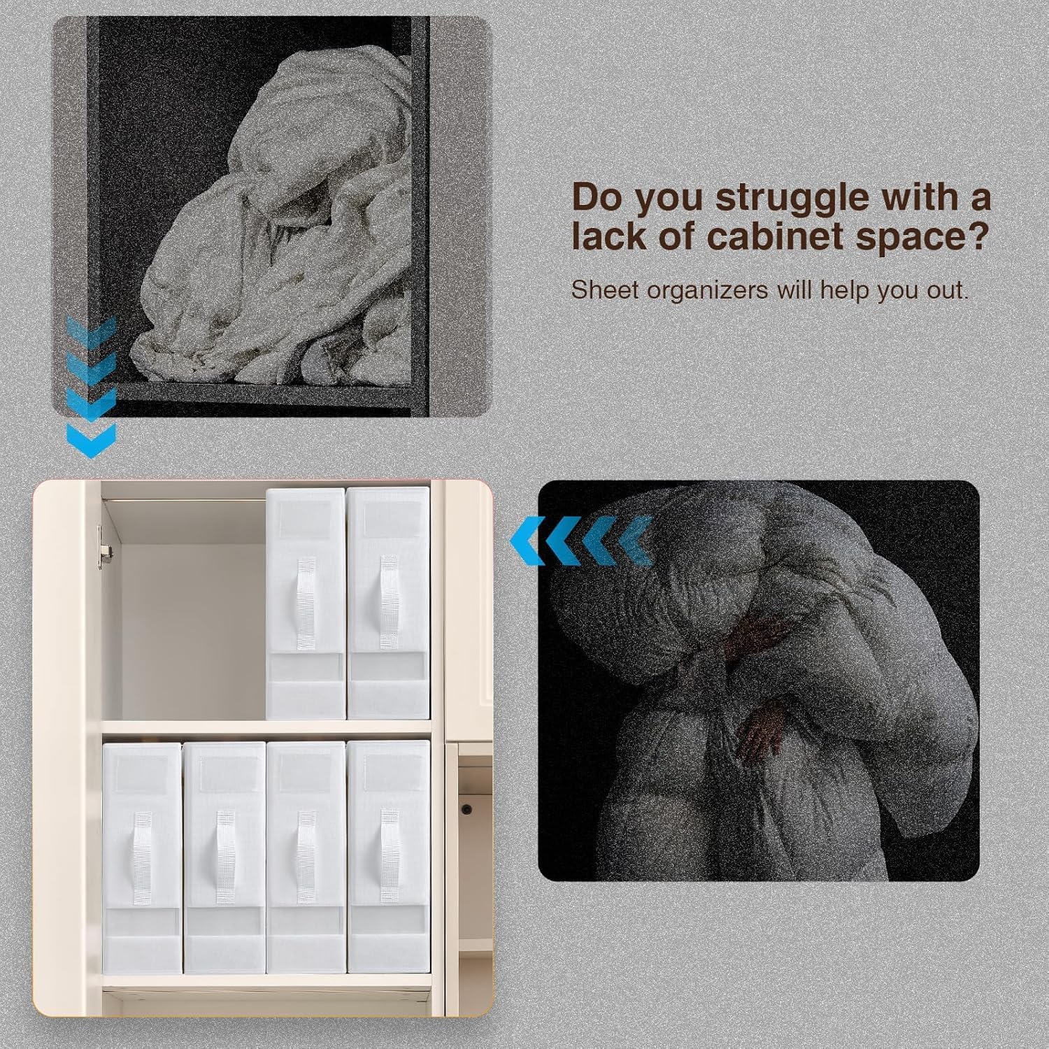 - 【NEW UNDER BED STORAGE】These folding sheets organizer for closet adopt a new folding method, solving the time-consuming and laborious problem of traditional organization and storage bedsheet organizer . Just put the sheets directly into our bedsheet organizers after folding, which not only releases your hands, but also saves storage space