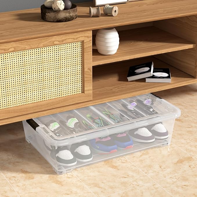 50 Quart Clear Latch Bin with Lid, Large Plastic Under Bed Storage Box, 3 Pack