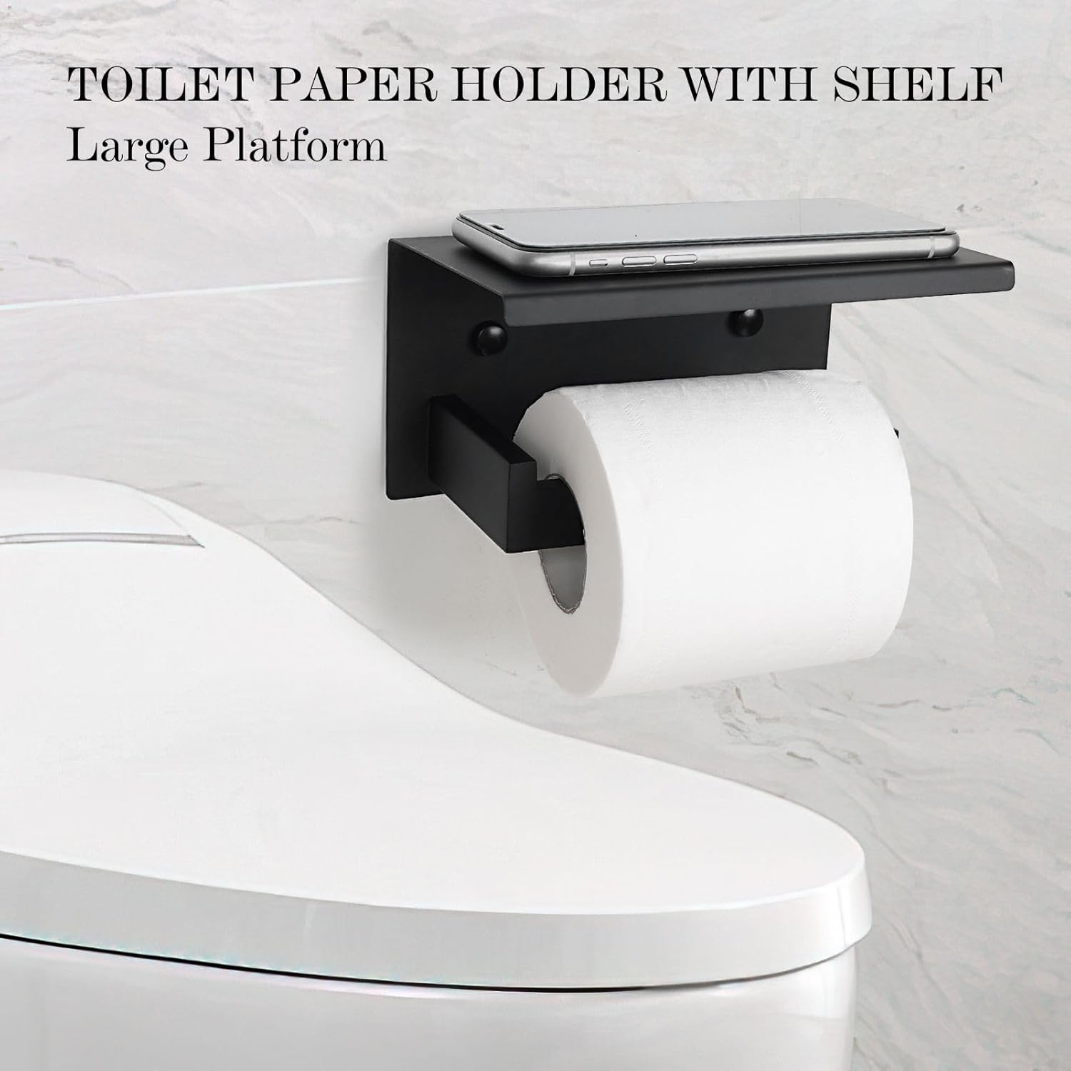 - Multi-functional toilet paper holder with a large shelving platform saves space while increasing its practicality