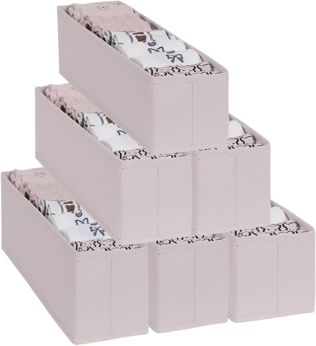 - 【Organize Easily】This 6 pcs small fabric drawer organizer bins conveniently separate your drawer into sections for storage of socks, underwear, bra, scarves, newborn baby items and accessories.