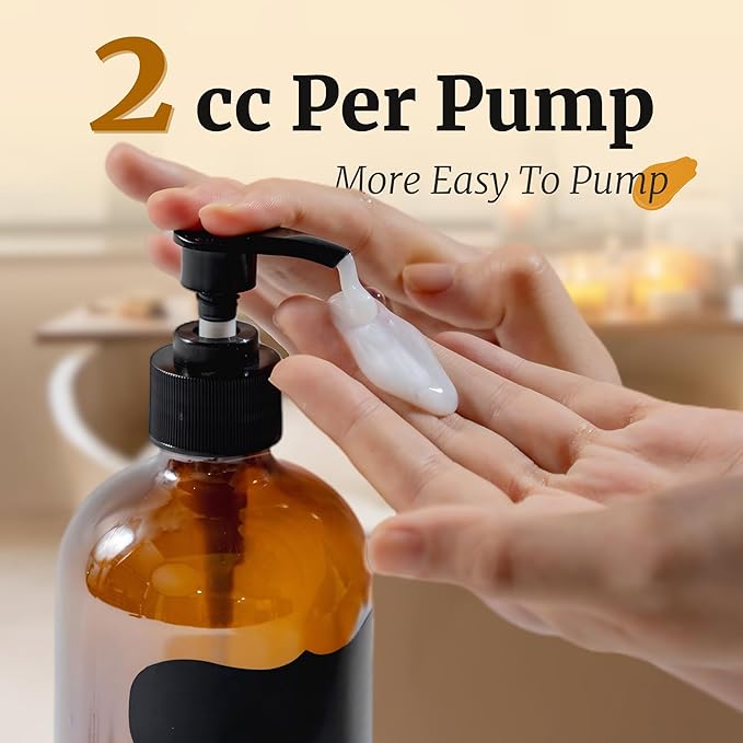 - Leak-Proof Design & Precise 2 cc/pump: 16 oz amber glass bottles with specially designed pumps prevent leaks when tipped. Dispenses 2cc per pump—ideal for controlled use of thick liquids like shampoo, conditioner, body wash, hand soap, and cosmetics