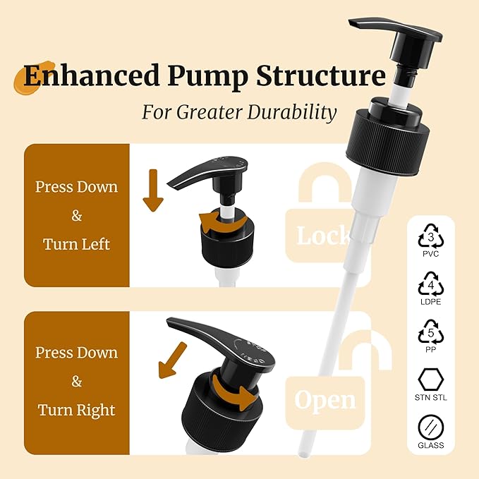 - Smooth Pump Dispensing: Black lotion pumps require minimal pressure—effortlessly dispense viscous liquids. Removable for easy rinsing