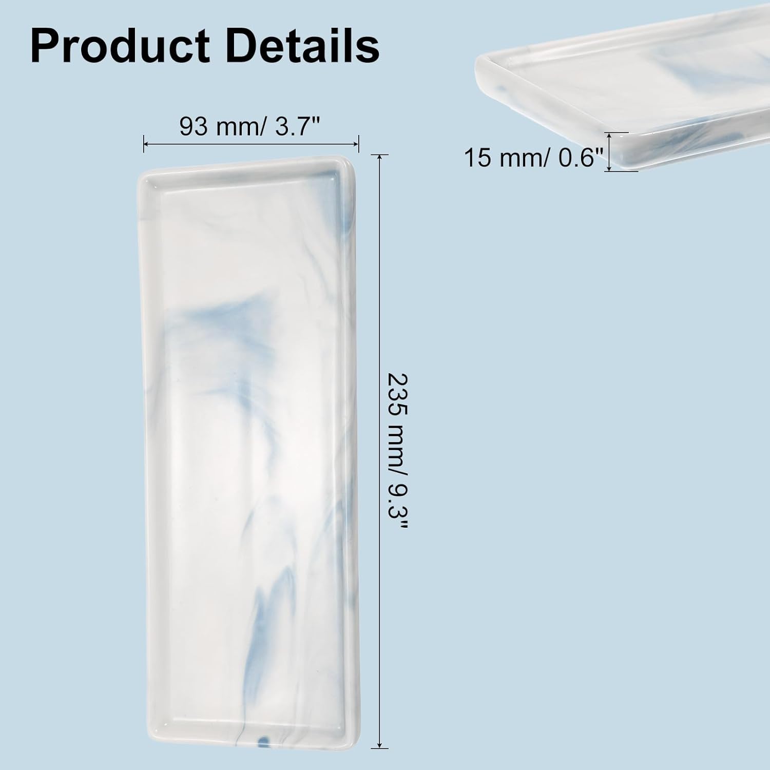 uxcell Marble Tray for Bathroom 9" Small Rectangle Ceramic Vanity Tray for Countertop Shatterproof Bathtub Soap Tray Kitchen Sink Organizer Key Trinket Ring Tray, Blue