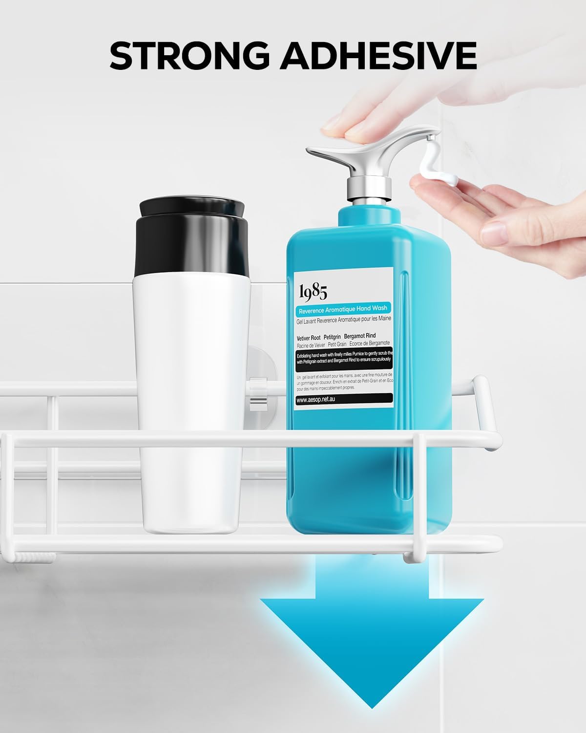 - π[What You Get]: 2 x Shower Caddy, 4 x Adhesive, 1 x Product Manual, and our 24-hour warm service.