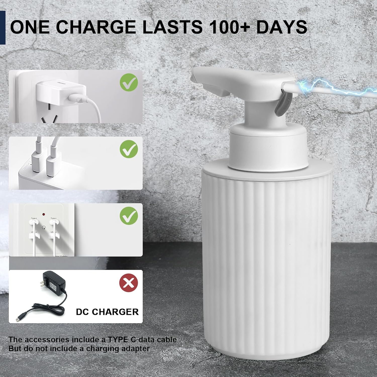 - 【100+ Days USB-C Power】Charge fully via USB-C in 3-4 hours for 100+ days of touchless operation (10+ uses/day). No battery swaps! Ideal for busy households or commercial spaces. Pro tip: Charge fully before first use (see manual)