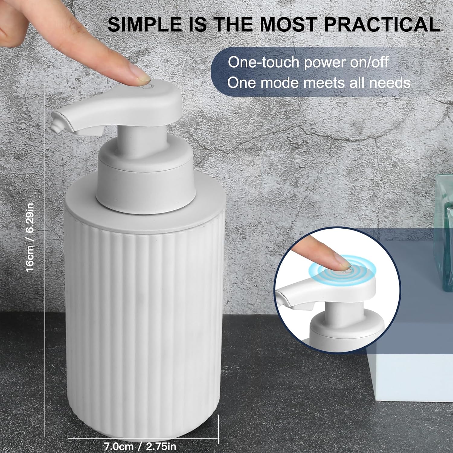 - 【Modern Ribbed Design】Elevate your space with this automatic foaming soap dispenser featuring vertical grooves and a sleek matte finish. The sandblasted plastic body and muted white pump add minimalist sophistication. Perfect for bathrooms, kitchens, or entryways – blends seamlessly with modern decor