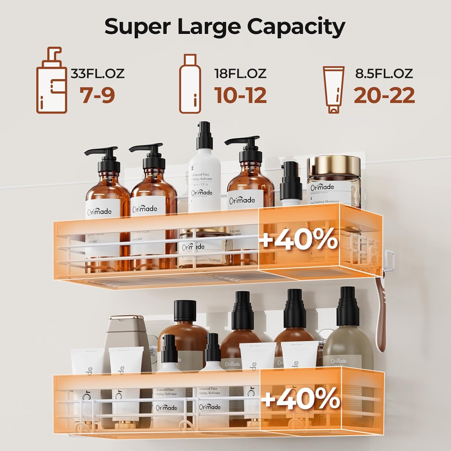 - Detachable Design: The shower basket is easy to take down from the adhesive hooks. Convenient for you to move the bathroom shelf to wherever you want.