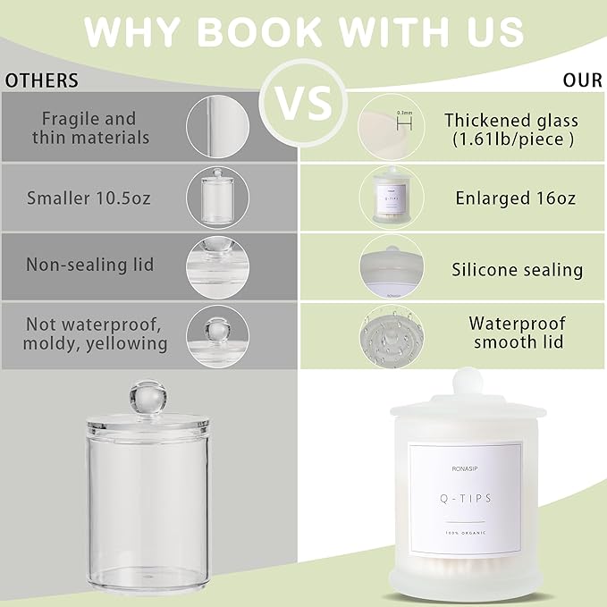 - Functional Art for a Clutter-Free Home: More than just bathroom organizers, these jars are decorative pieces that combine minimalist elegance with practical function. They effortlessly transform clutter into a curated display, adding a touch of sophistication to your space. Redefine your home storage with solutions that are as beautiful as they are useful