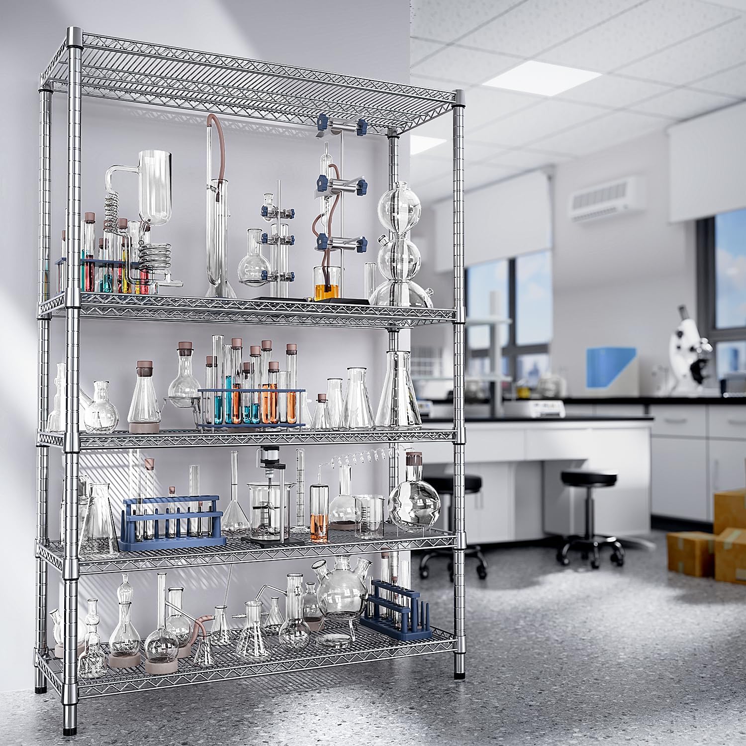 IZEUK 4250 LBS Garage Shelving Wide Storage Shelves 5 Tier Metal Shelves Heavy Duty Adjustable Utility Shelf Rack Chrome 17.7" D x 59.1" W x 70.4" H
