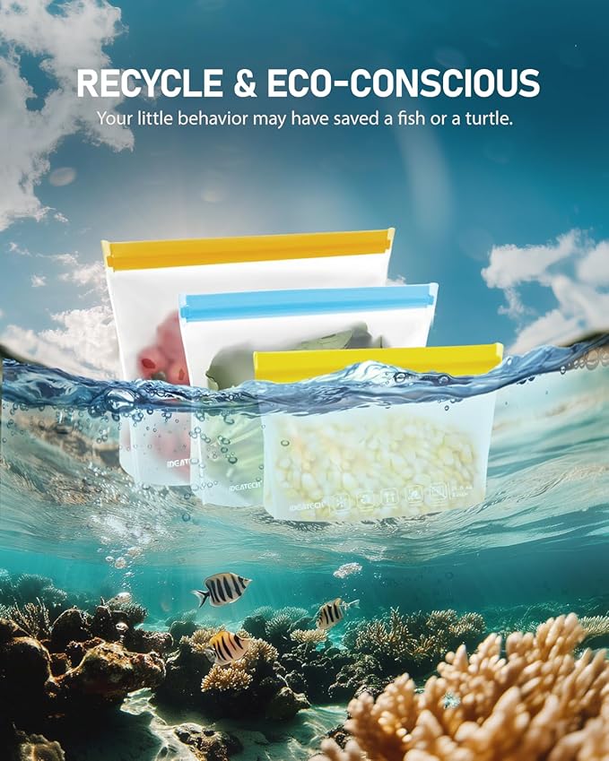 - Food Grade Reusable Bags: Made of food grade PEVA , reusable storage bags are PVC-free, lead-free, chloride-free and BPA FRE. They are not harmful to the environment. Also,you don’t need worry about your heath with these food bags