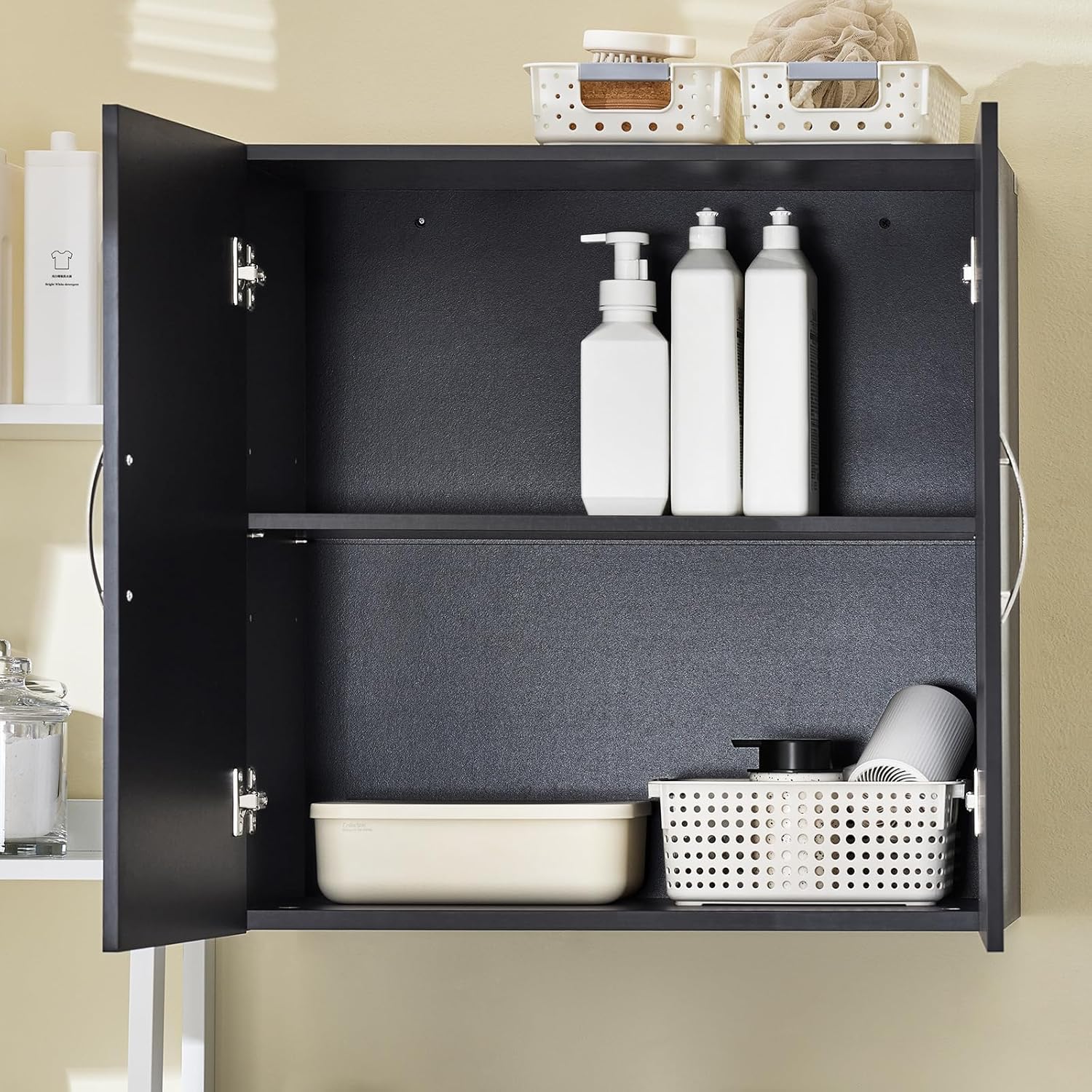 SoBuy Wall Cabinet Laundry Room Kitchen, Over Toilet Storage Cabinet, Medicine Cabinet with Shelf for Bathroom Garage Hallway Entryway, Black BZR200-SCH