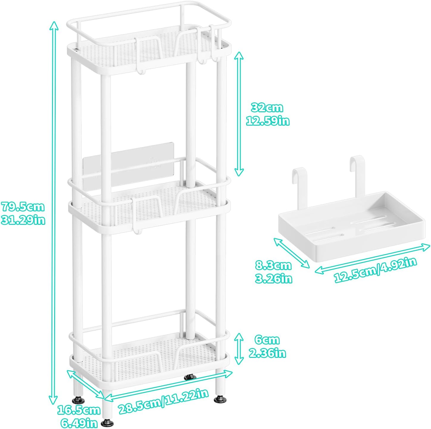- [Multi-functional Shower Organizer]: HapiRm shower shelf for inside shower provides 3-tier storage shelves , and it comes with 4 hooks and a soap holder to keep your bathroom items organized