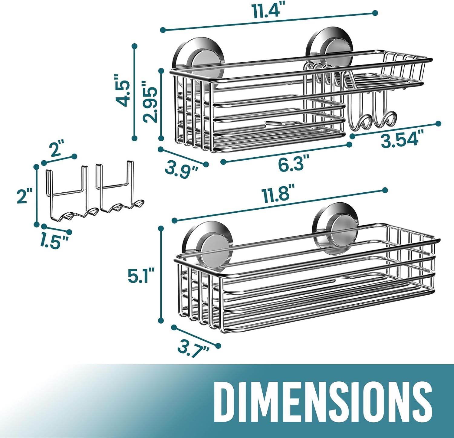- Large Capacity & Multifuctional: Includes 2 shower shelves and 2 razor hooks. Shower holders are perfect for Bathroom, Kitchen and RV Storage, such as shampoos, conditioners, shower gels, facial cleansers, etc., and the hooks are fit for most size of razors, loofahs, shower brushes, etc., Shower caddy suction cups heavy duty help you save a lot of space