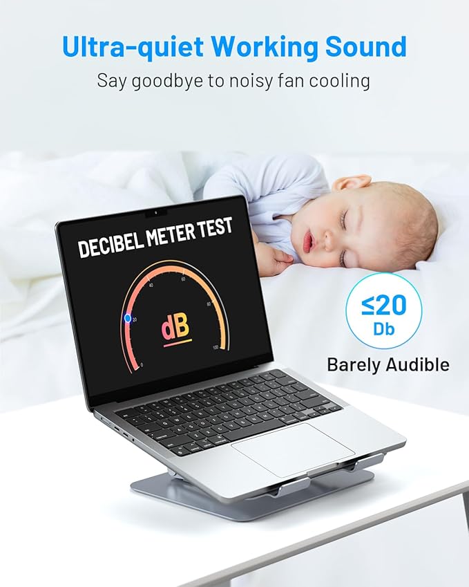 - 【Ultra-quiet 2-levelCooling】The cooler produces barely audible sound while working, offering a ≤20Db ultra-quiet circumstance. We suggest connecting the cooler to a 20W USB adapter (sold separately), by which can use 5W or 20W cooling power. (If you connect the cooler to your laptop or 5W adapter, you can only use 5W cooling power)