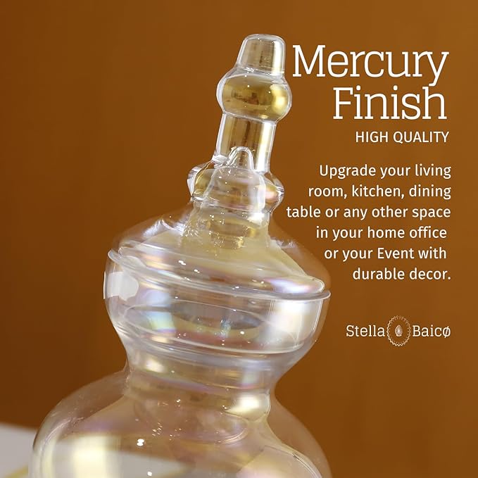 - BEAUTIFUL SHAPE: Add a dash of sophistication to your party or your household design with Stella Baicø decorative jars. Each jar is made of clear glass and features a different size and a unique design that includes a spacious interior and a handled lid.