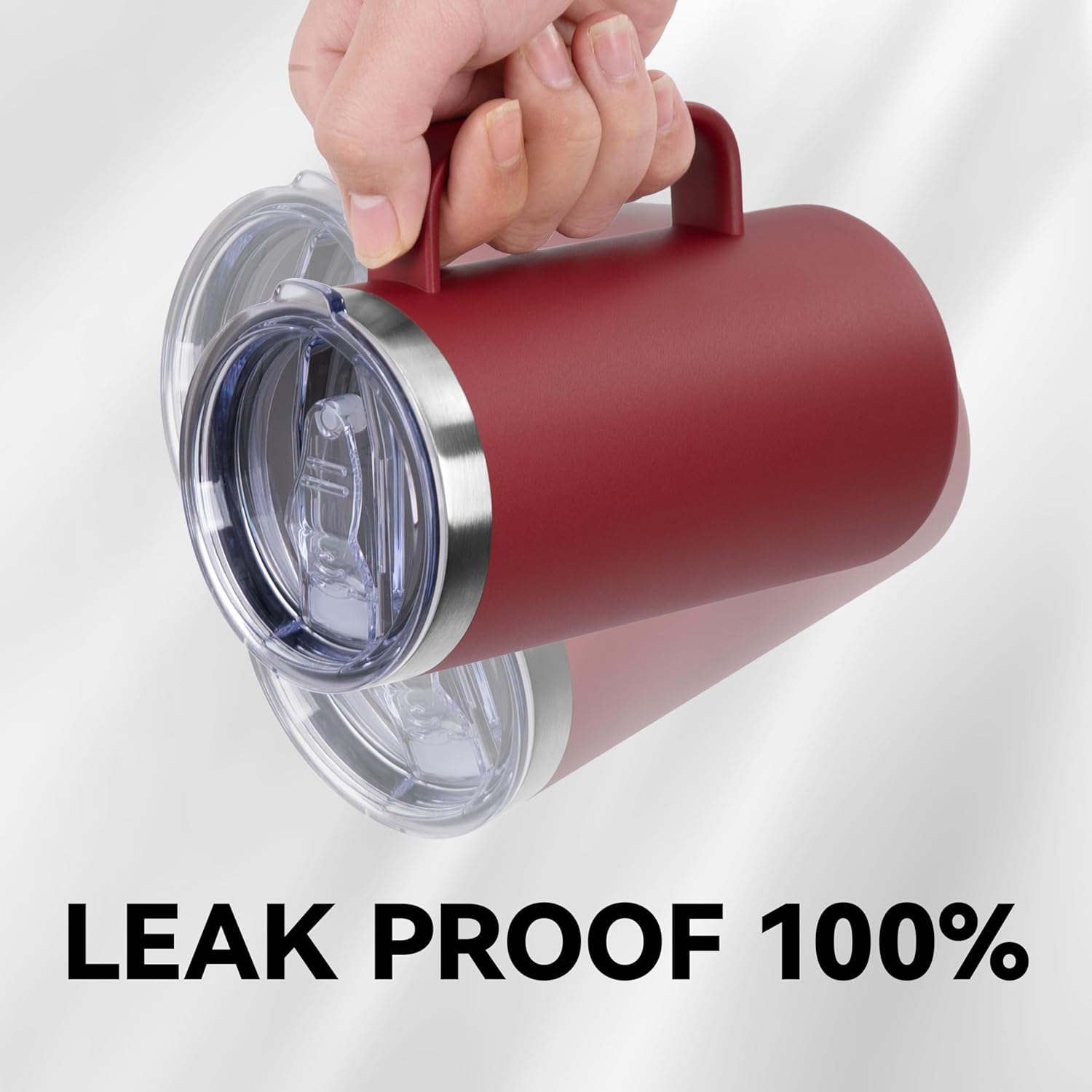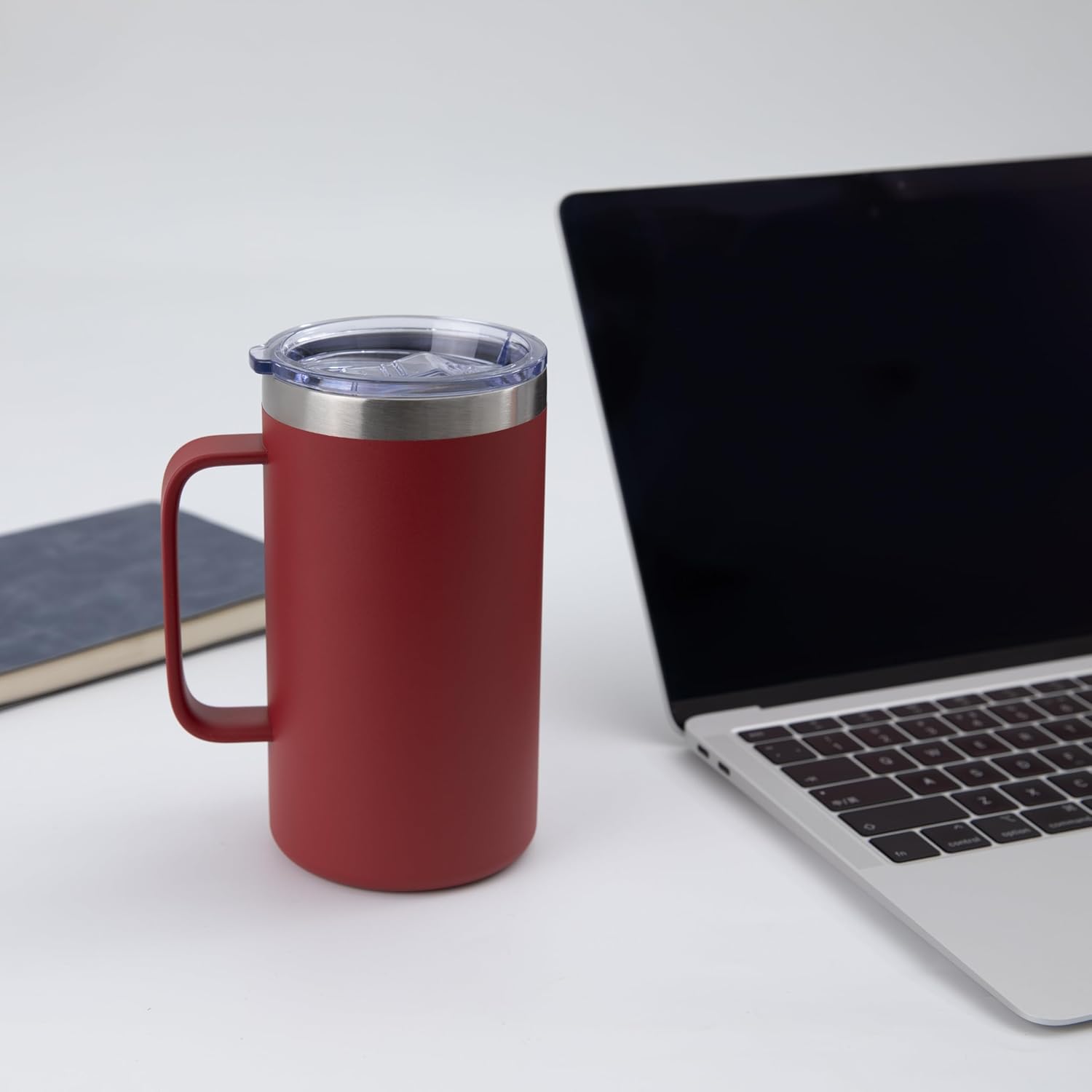 DOMICARE 24oz Mug with Handle and Lid, Stainless Steel Coffee Mug, Travel Mug with Handle, Double Wall Vacuum Coffee Tumbler, Reusable Insulated Cup, Dark Red, Pack 8